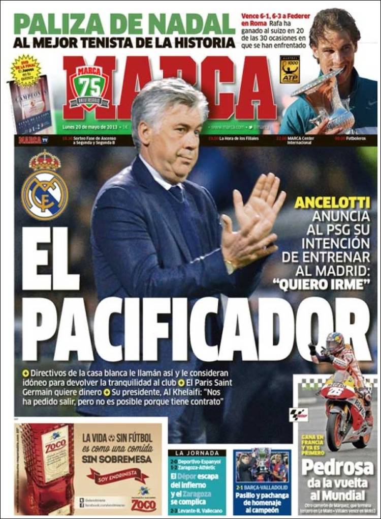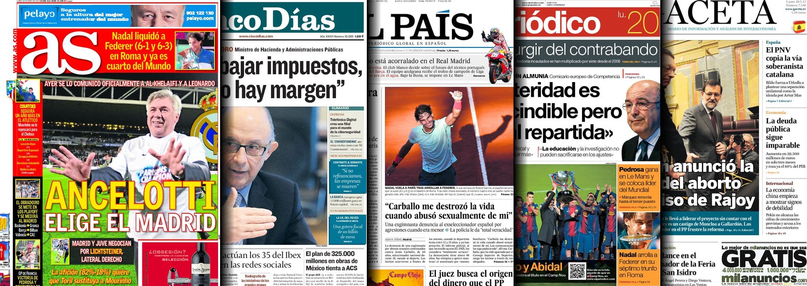 Portadas de los diarios El Mundo, El País, ABC, La Razón, La Vanguardia, La Gaceta, El Periódico, Cinco Días, El Economista, Expansión, Marca, As, Mundo Deportivo y Sport.