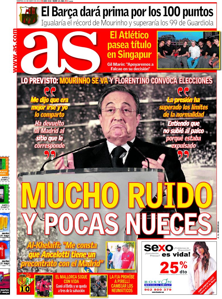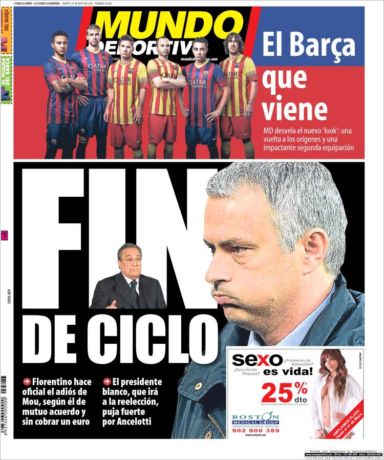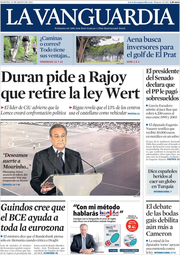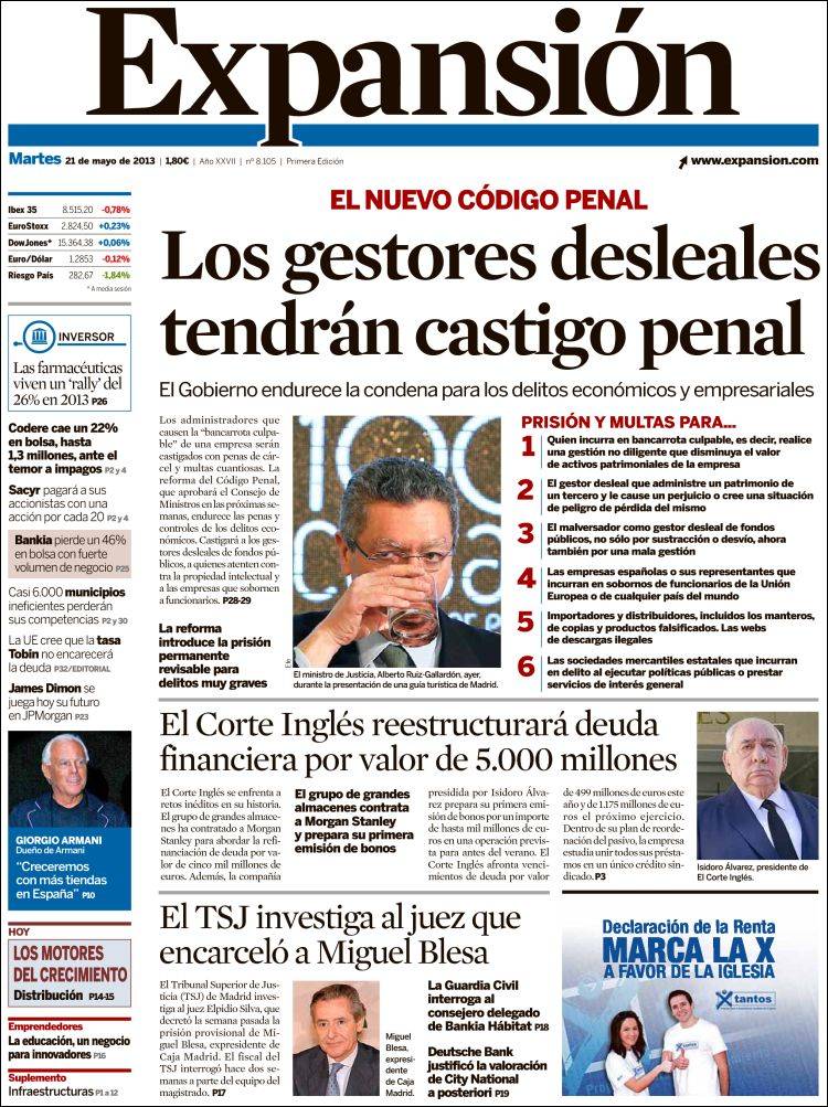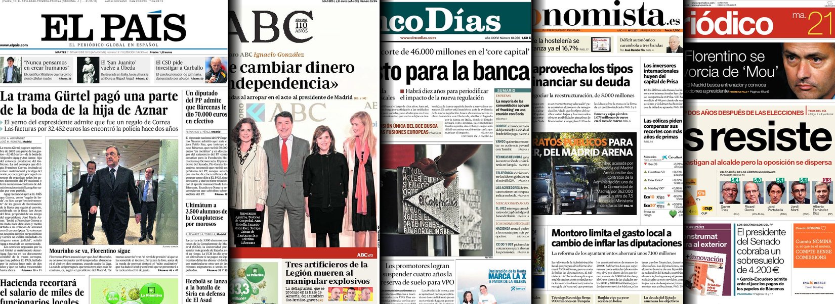 Portadas de los diarios El Mundo, El País, ABC, La Razón, La Vanguardia, La Gaceta, El Periódico, Cinco Días, El Economista, Expansión, Marca, As, Mundo Deportivo y Sport.