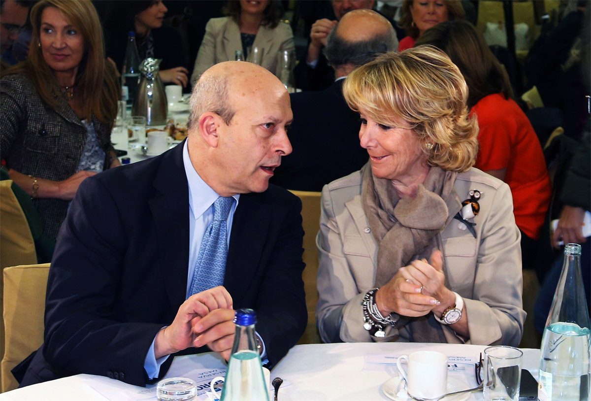 El titular de Educación, Cultura y Deporte, José Ignacio Wert, ha participado este martes en un desayuno informativo organizado por Foro Popular para defender la LOMCE, la última ley educativa. Al acto han acudido destacados miembros del PP de Madrid, como el presidente regional, Ignacio González, la delegada del Gobierno, Cristina Cifuentes, o la presidenta del PP madrileño, Esperanza Aguirre, que ha presentado al ministro.