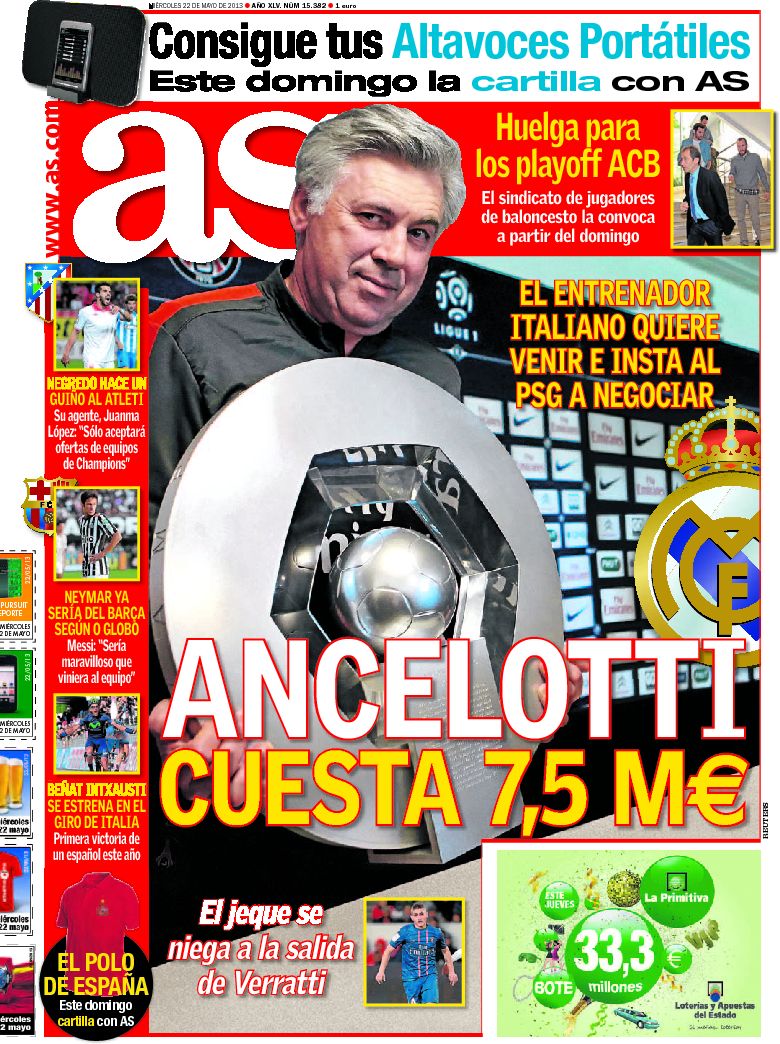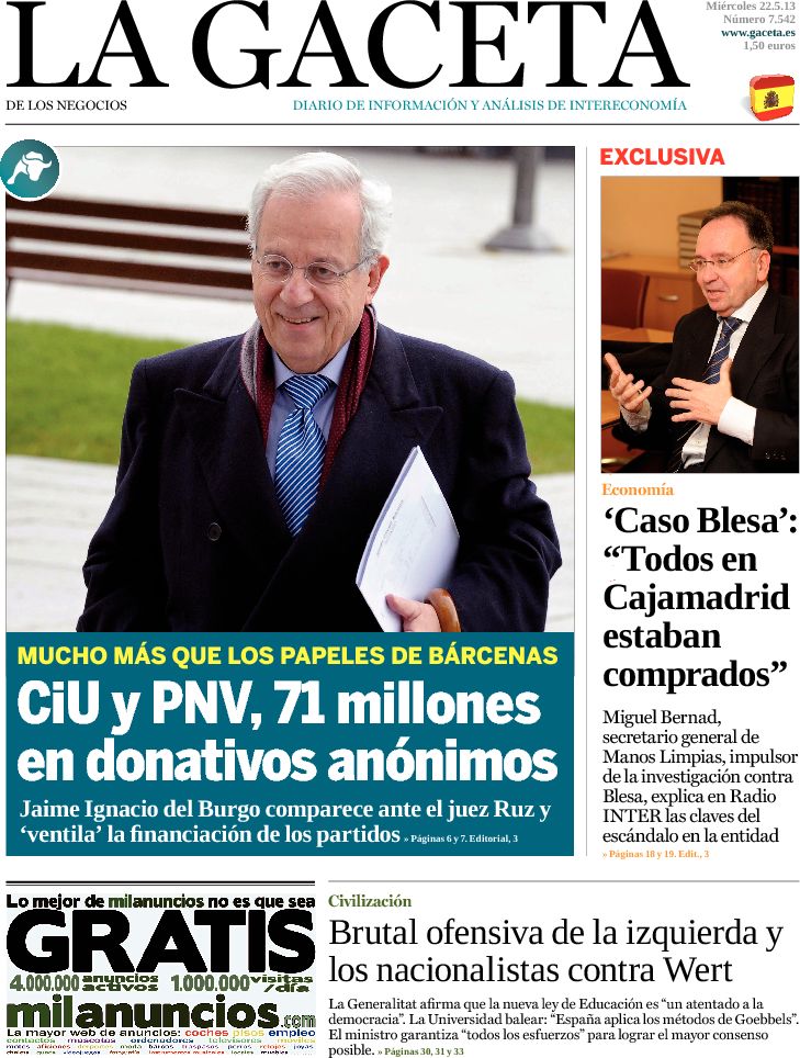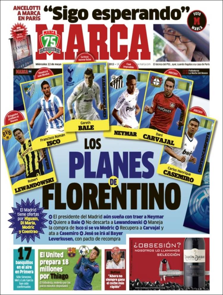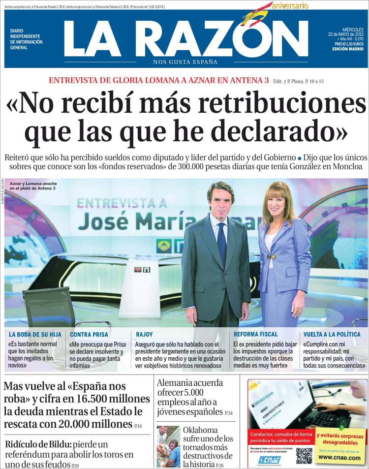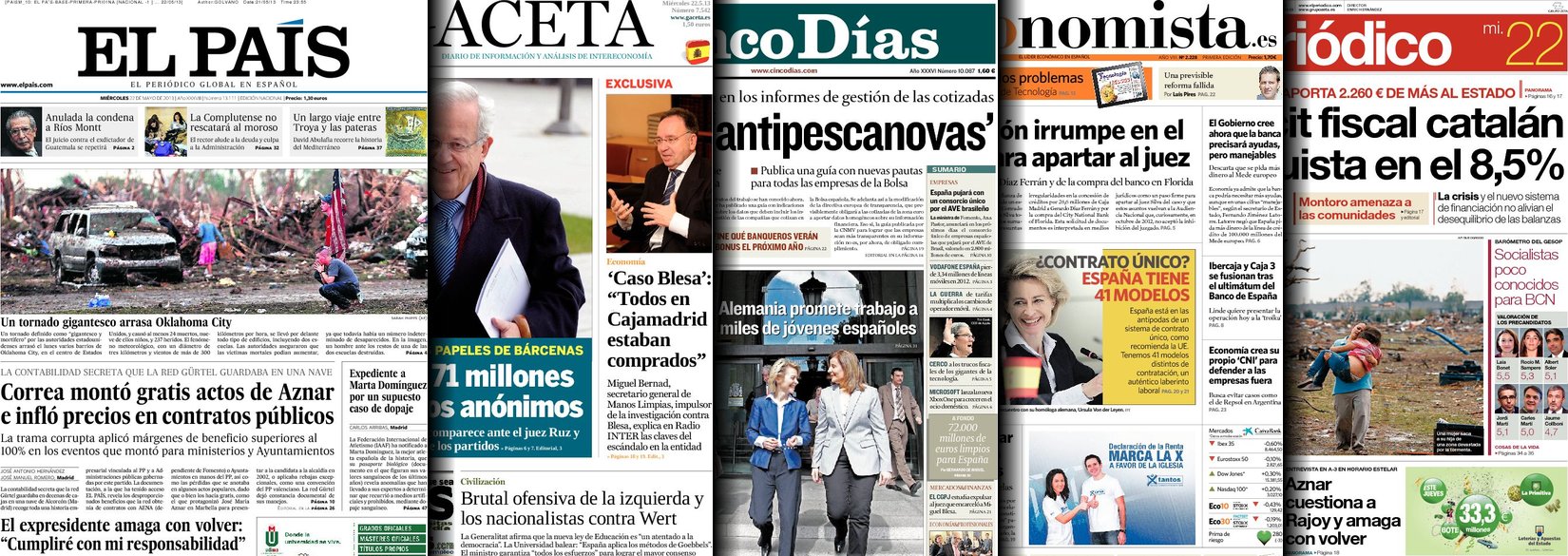 Portadas de los diarios El Mundo, El País, ABC, La Razón, La Vanguardia, La Gaceta, El Periódico, Cinco Días, El Economista, Expansión, Marca, As, Mundo Deportivo y Sport.