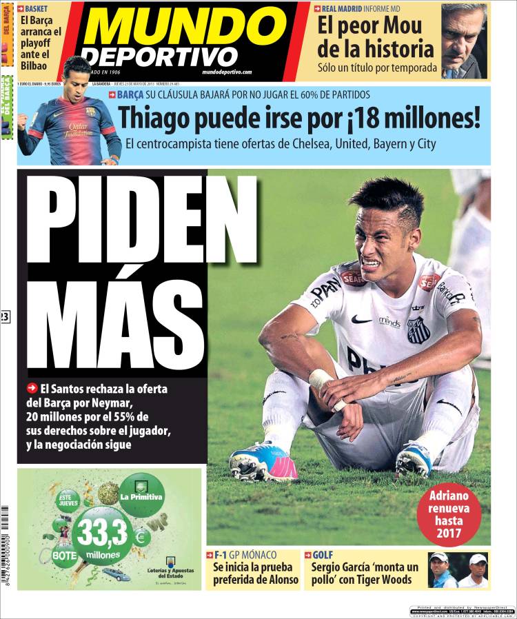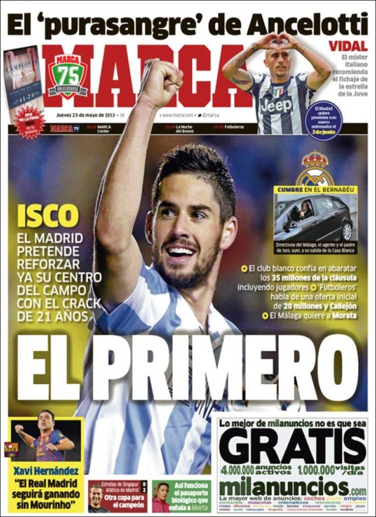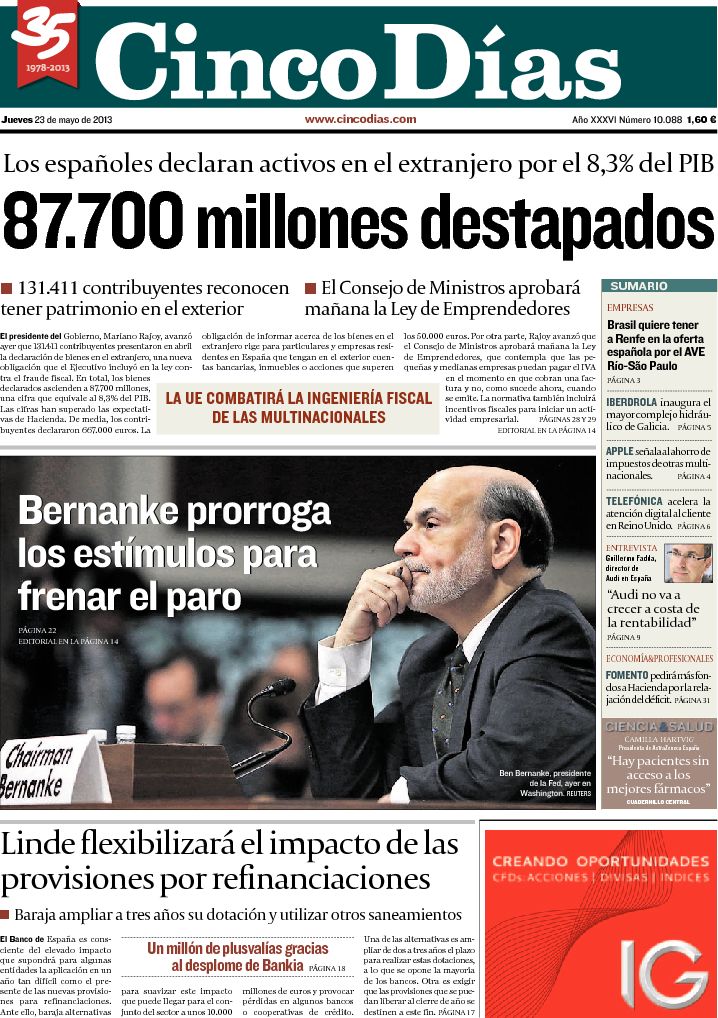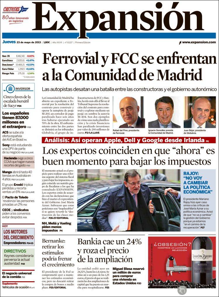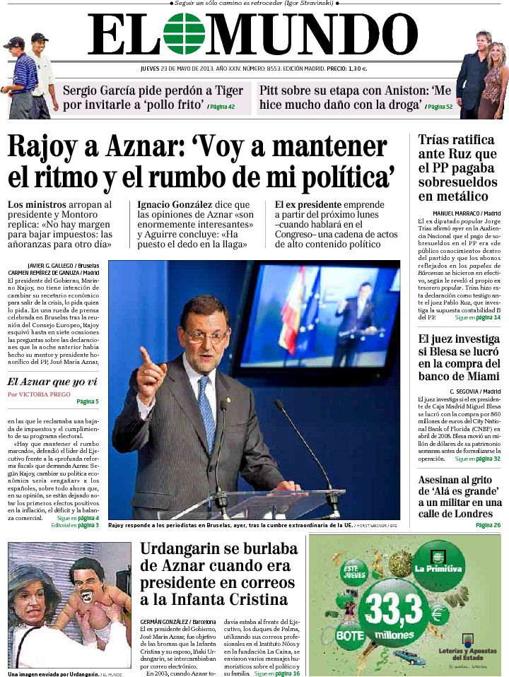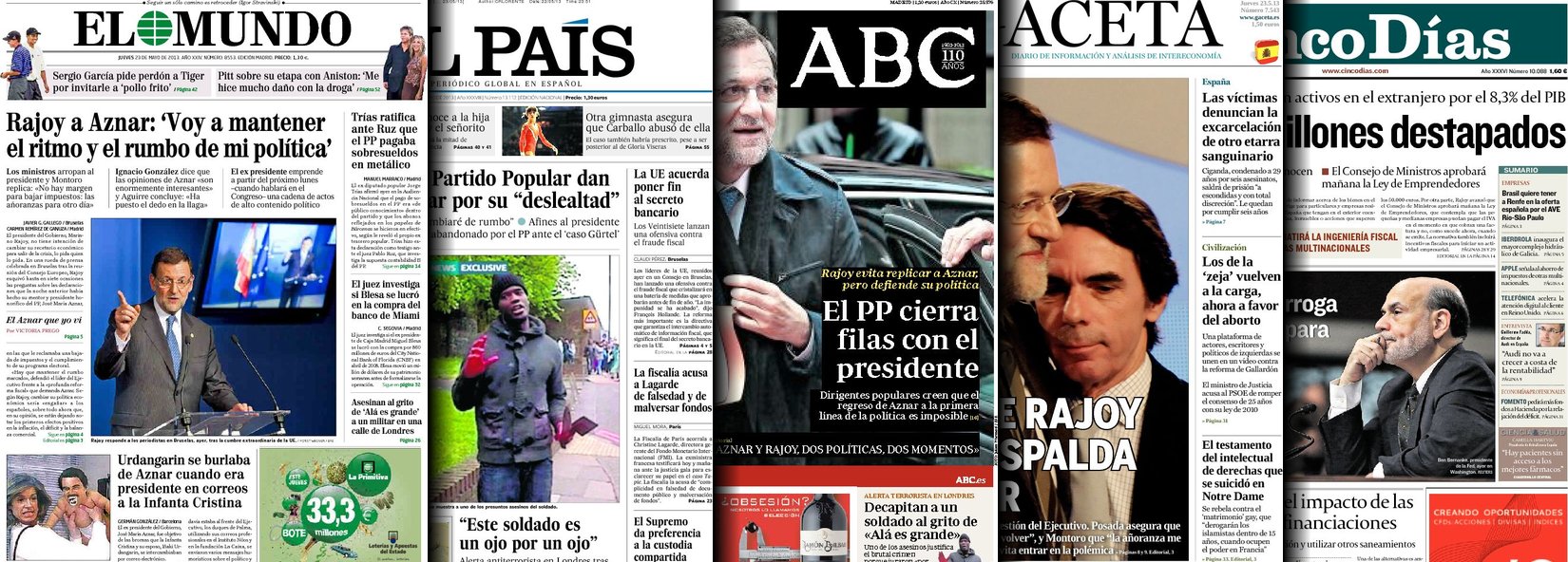 Portadas de los diarios El Mundo, El País, ABC, La Razón, La Vanguardia, La Gaceta, El Periódico, Cinco Días, El Economista, Expansión, Marca, As, Mundo Deportivo y Sport.