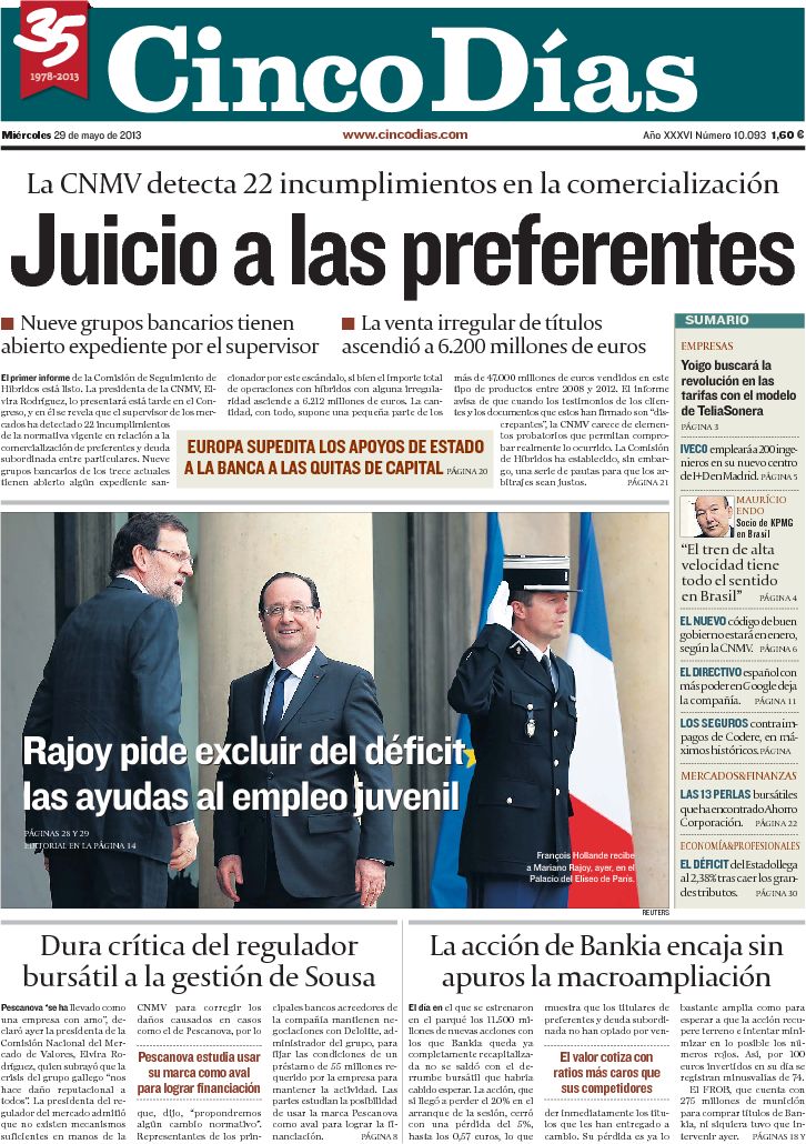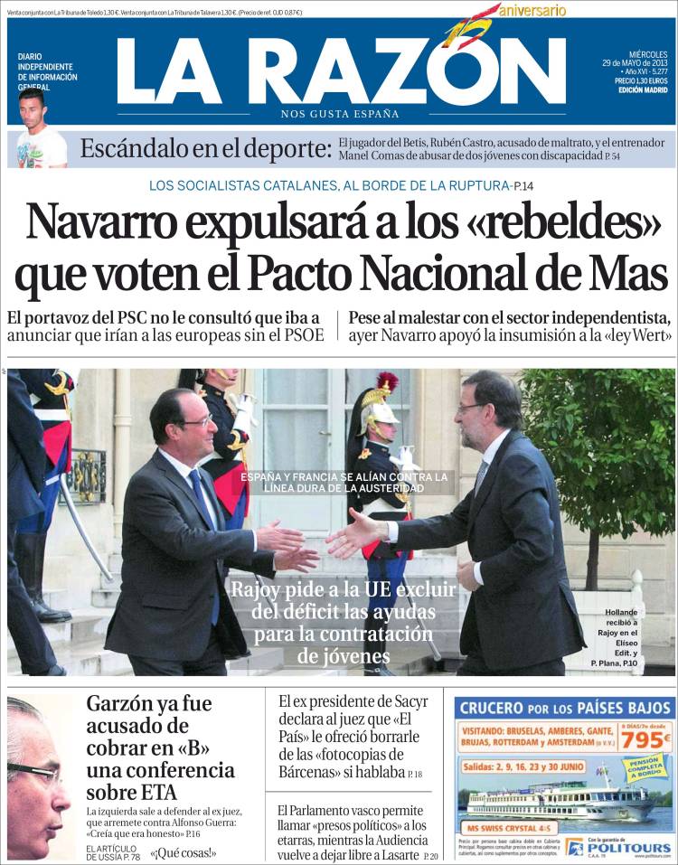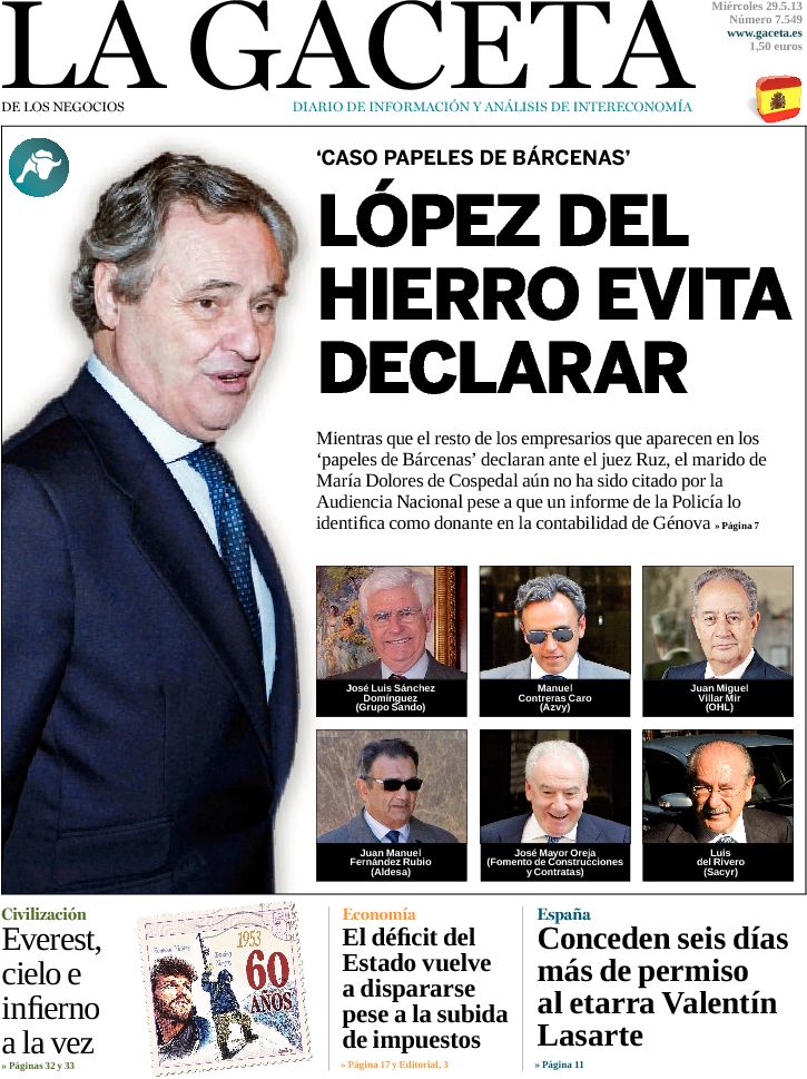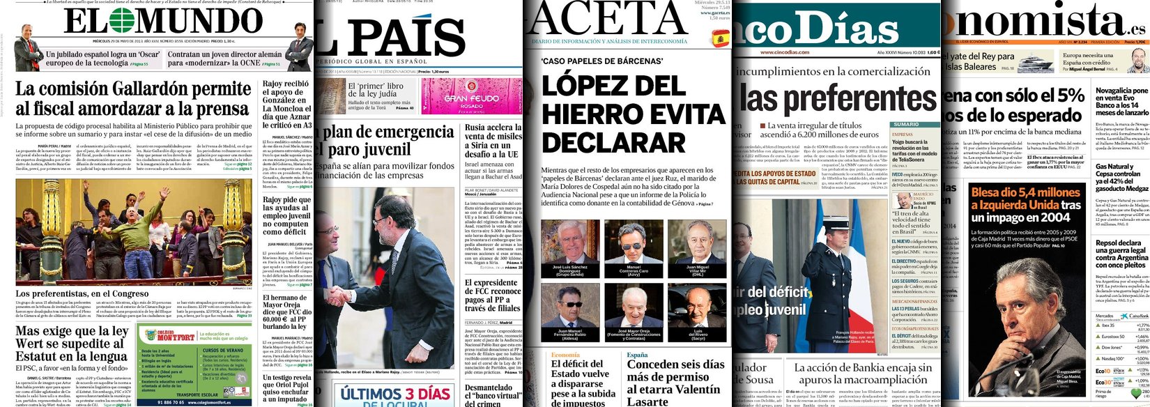 Portadas de los diarios El Mundo, El País, ABC, La Razón, La Vanguardia, La Gaceta, El Periódico, Cinco Días, El Economista, Expansión, Marca, As y Sport.