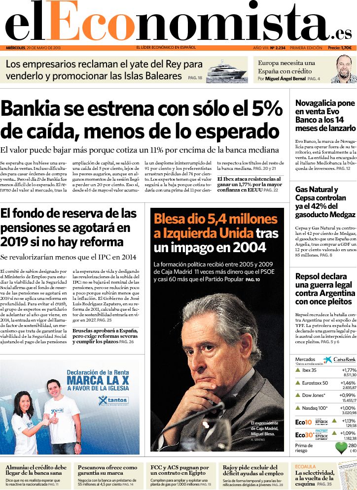 "Bankia se estrena con sólo el 5% de caída, menos de los esperado"