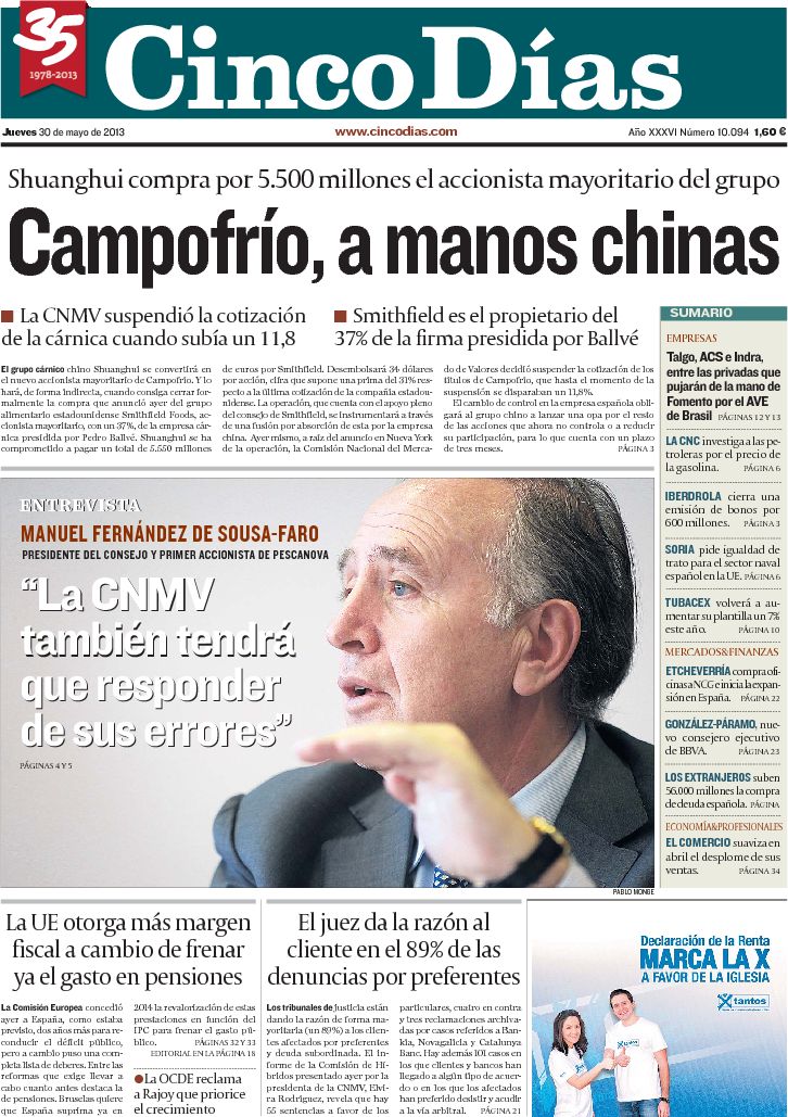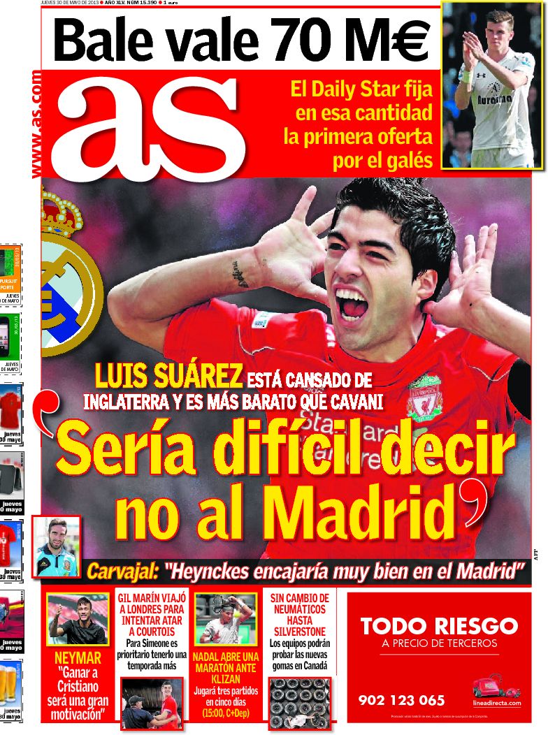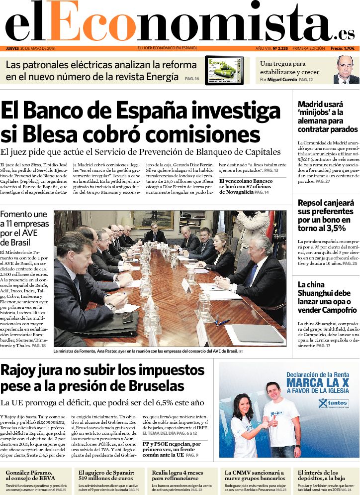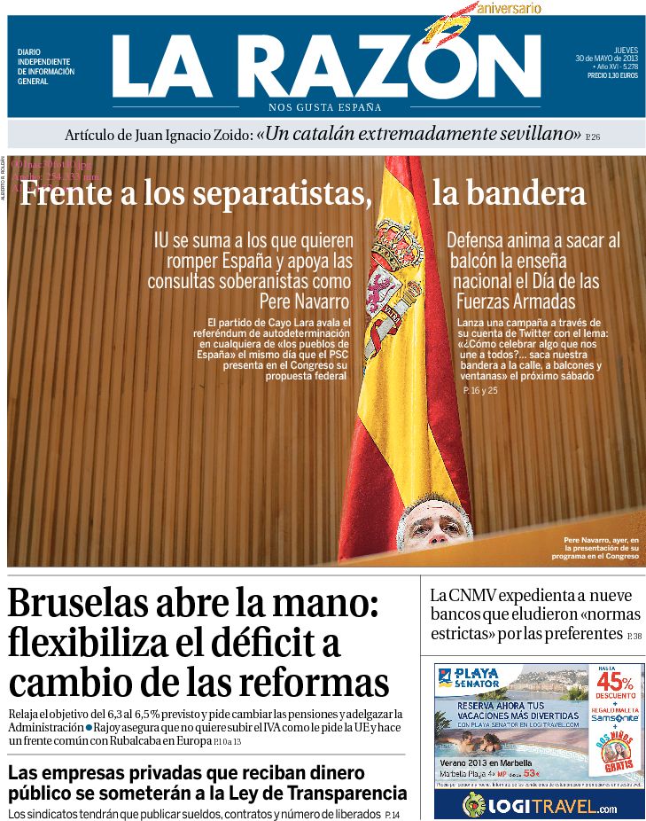 Portadas de los diarios El Mundo, El País, ABC, La Razón, La Vanguardia, La Gaceta, El Periódico, Cinco Días, El Economista, Expansión, Marca, As, Mundo Deportivo y Sport.