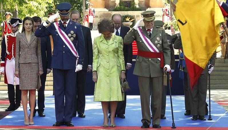El emotivo acto de homenaje a los caídos que se celebra con motivo del Día de las Fuerzas Armadas fue el elegido este sábado por Su Majestad el Rey don Juan Carlos para reaparecer en un acto institucional fuera del Palacio de la Zarzuela, después de que hiciese su primera aparición en público en la final de la Copa del Rey de fútbol tras la operación de cadera a la que tuvo que someterse hace tres meses.