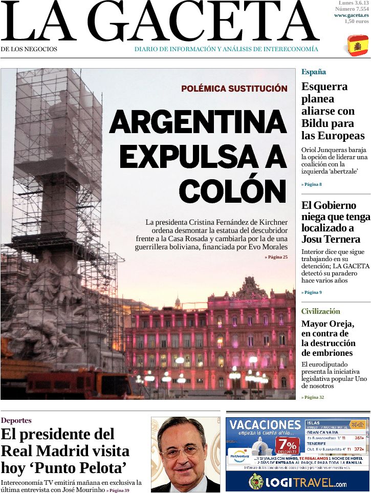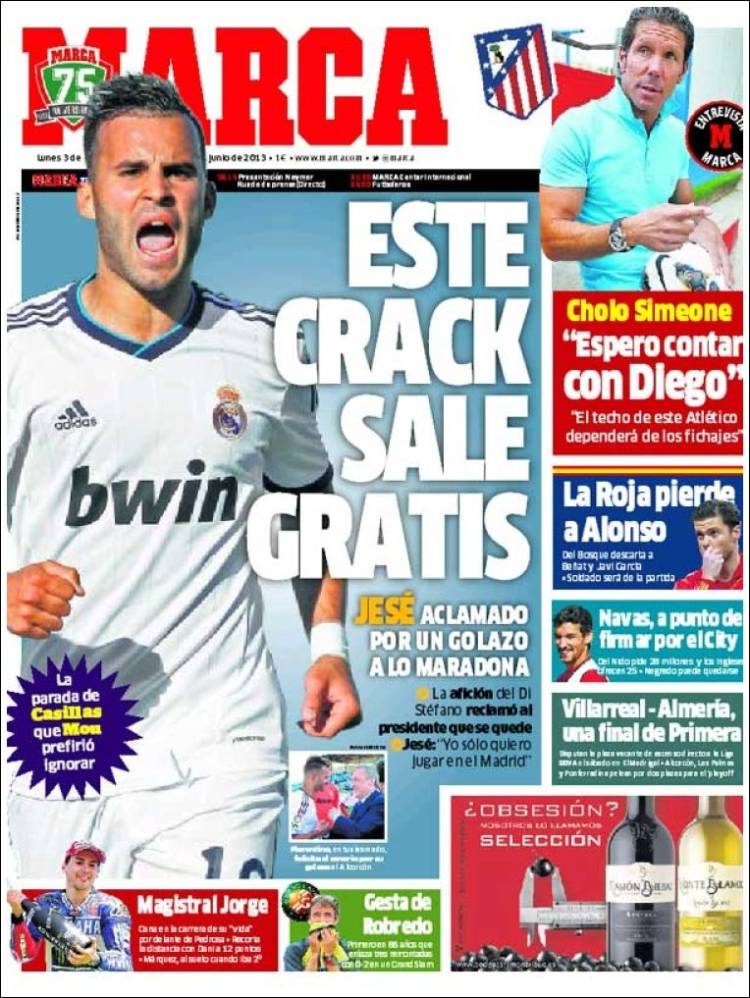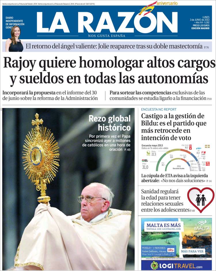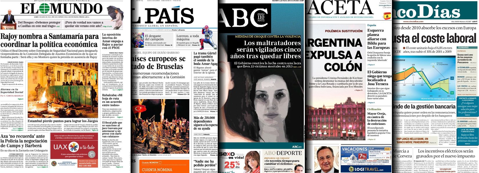 Portadas de los diarios El Mundo, El País, ABC, La Razón, La Vanguardia, La Gaceta, El Periódico, Cinco Días, El Economista, Expansión, Marca, As, Mundo Deportivo y Sport.