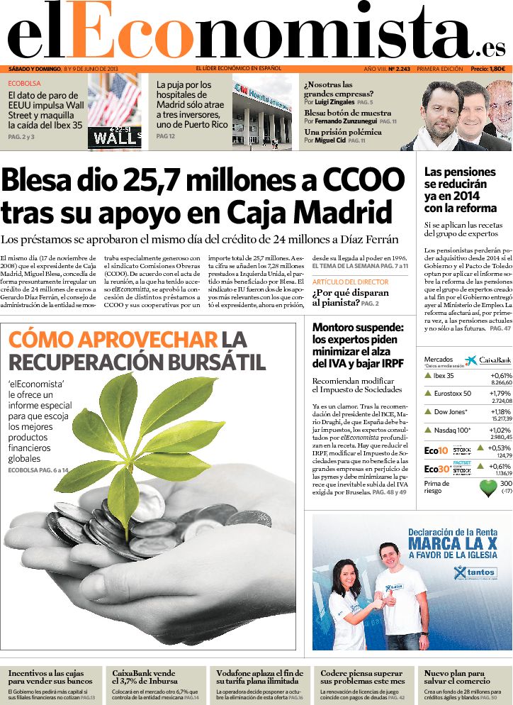 "Blesa dio 25,7 millones a CCOO tras su apoyo en Caja Madrid"