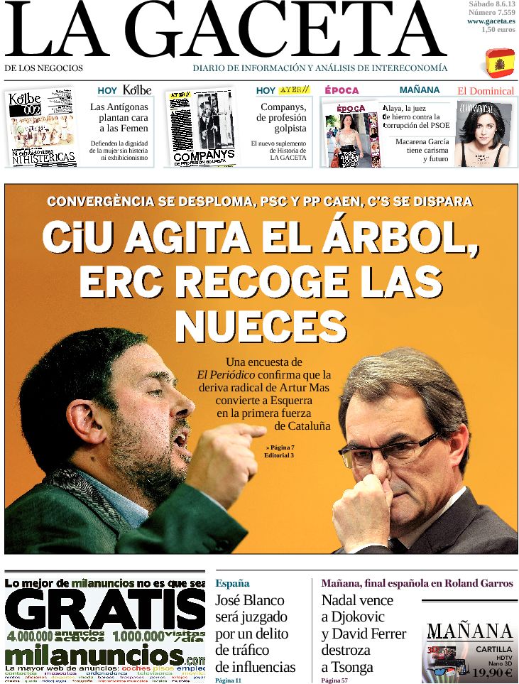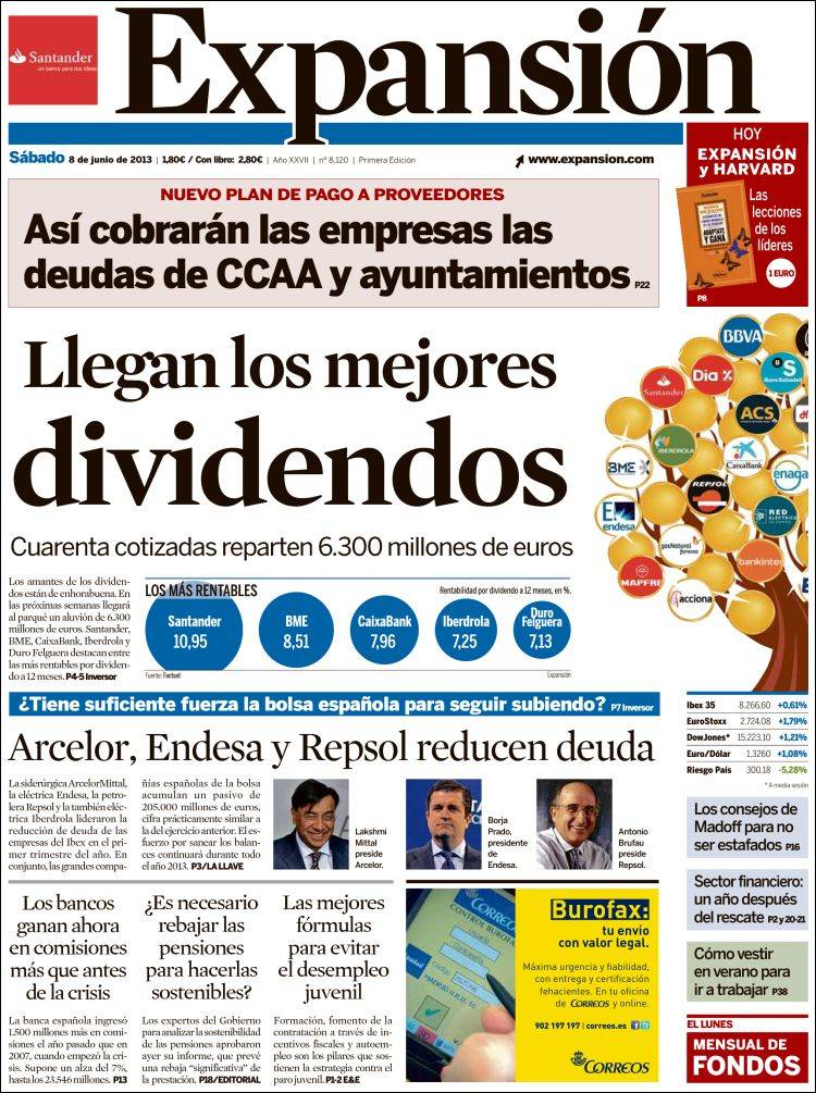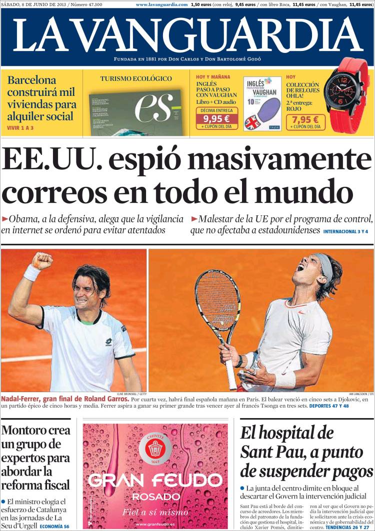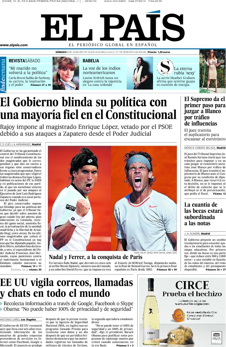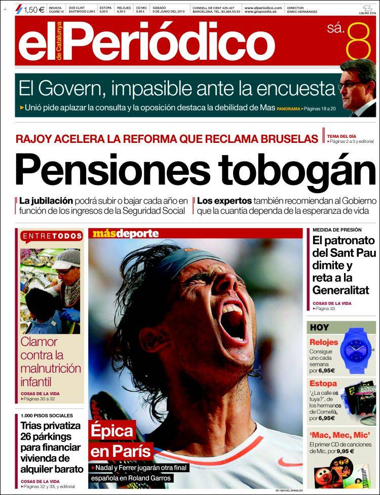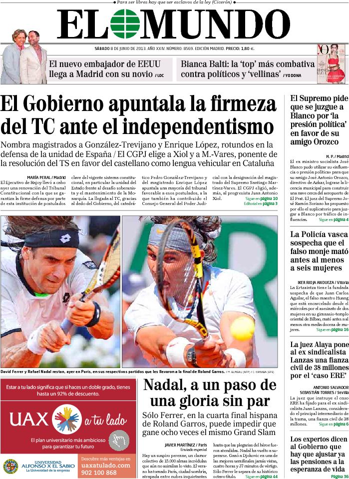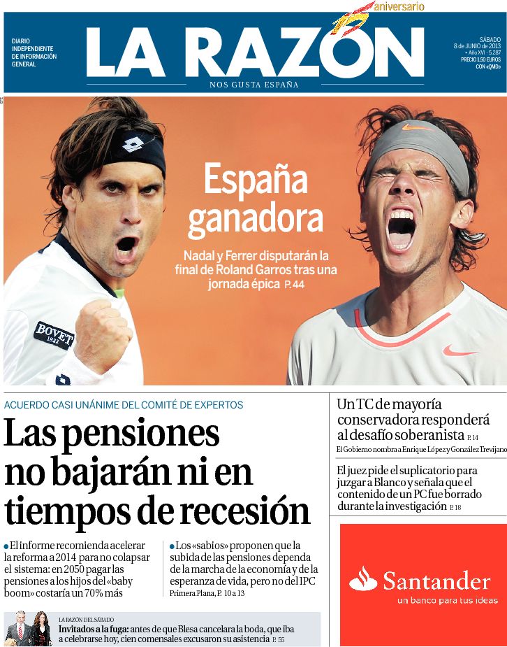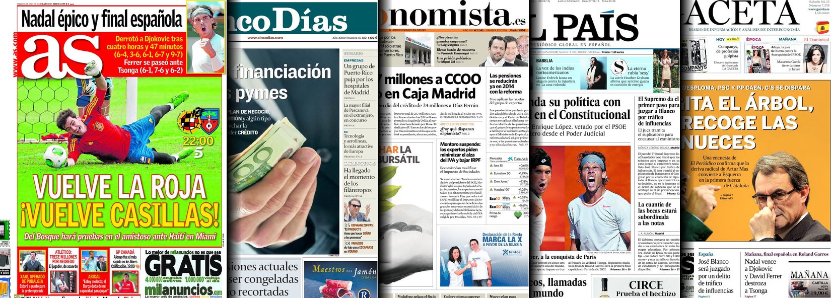 Portadas de los diarios El Mundo, El País, ABC, La Razón, La Gaceta, La Vanguardia, El Periódico, Expansión, el Economista, Cinco Días, Marca, As, Mundo Deportivo y Sport.