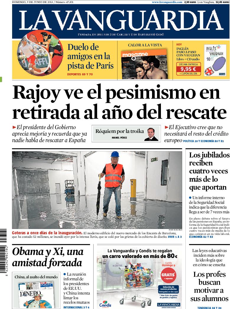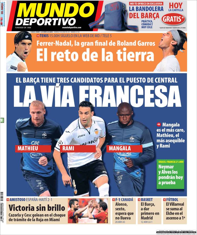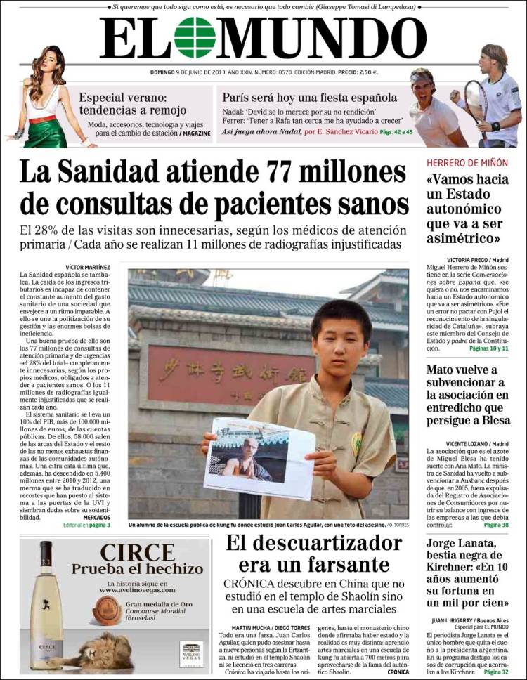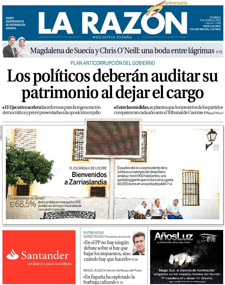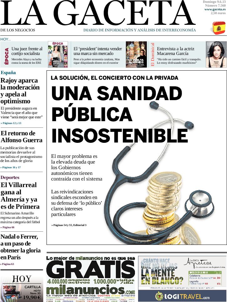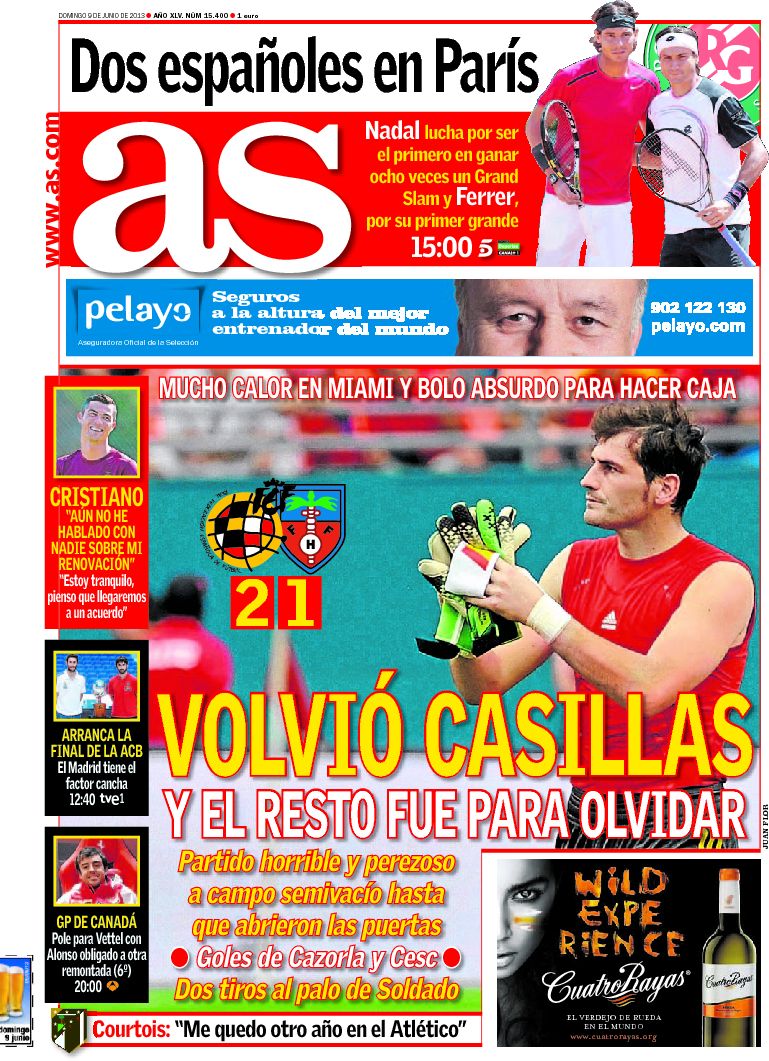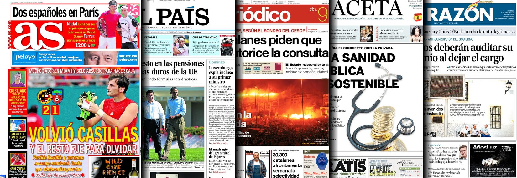 Portadas de los diarios El País, La Gaceta, ABC, La Razón, El Periódico, As y La Vanguardia.