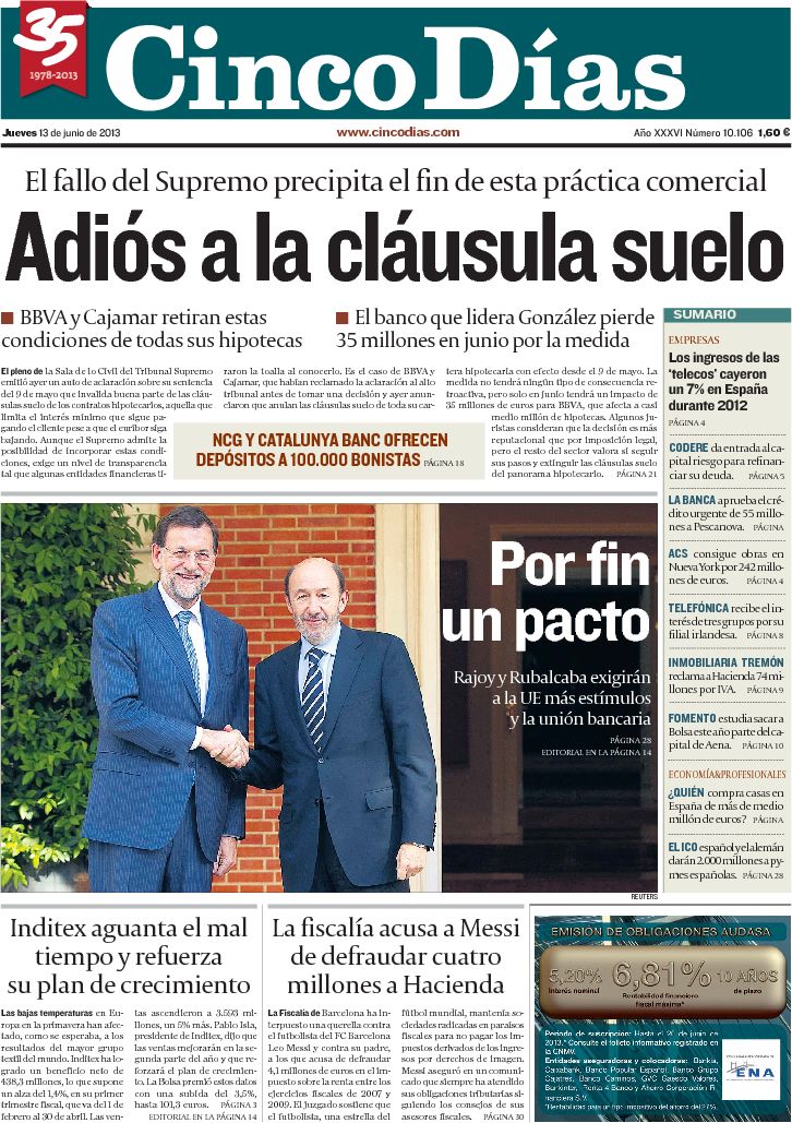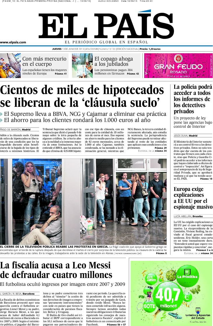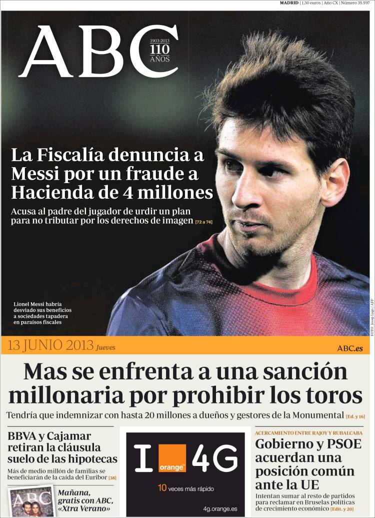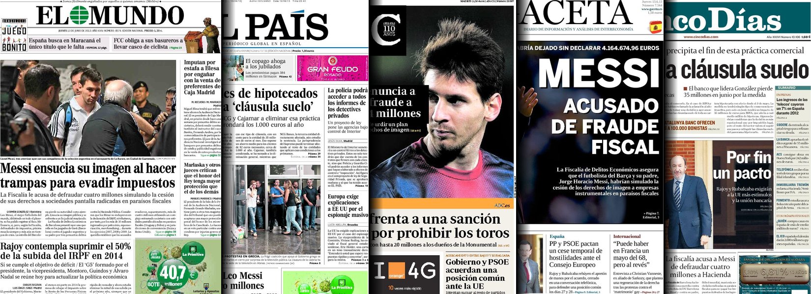 "Mas se enfrenta a una sanción millonaria por prohibir los toros";"La Fiscalía denuncia a Messi por un fraude a Hacienda de 4 millones"