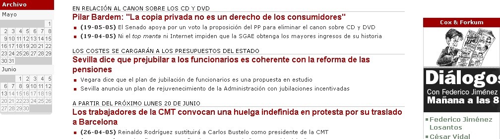 Tal día como hoy, 14 de junio, pero de 2005, Libertad Digital contaba en su portada las últimas reacciones sobre el canon digital de "Pilar Bardem: "La copia privada no es un derecho de los consumidores"", sino "una limitación de los derechos de los creadores". Por ello, consideraba que si se eliminaba el canon "debe restituirse el derecho de autorización de los titulares y, por tanto, quedaría prohibido realizar copias de uso privado". Para Bardem, si se adoptara esa vía se ocasionaría un fraude generalizado convirtiendo a todos en "delincuentes potenciales".