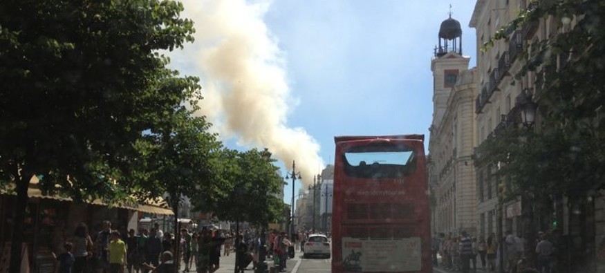 Desde la madrileña Puerta del Sol también podía apreciarse la magnitud de la columna de humo que sale del Alcázar