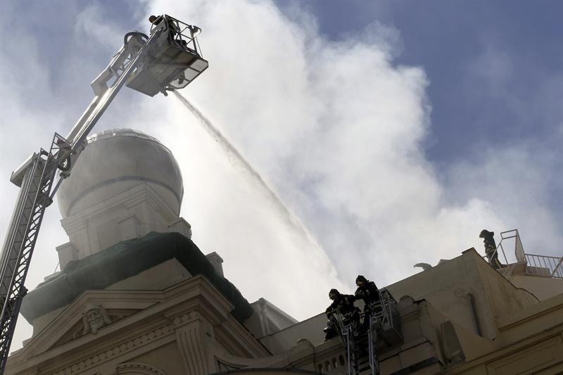 Hasta cien bomberos se han desplazado hasta el número 20 de la madrileña calle de Alcalá para tratar de controlar el incendio registrado en el conocido Teatro Alcázar de la capital