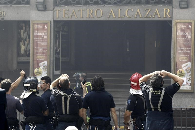 El madrileño teatro Alcázar, situado en el centro de la capital, donde antiguamente estaba la discoteca Alcalá 20, ha sido víctima de las llamas por un incendio originado en las plantas superiores.