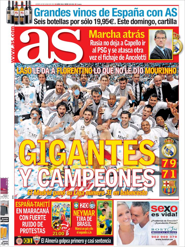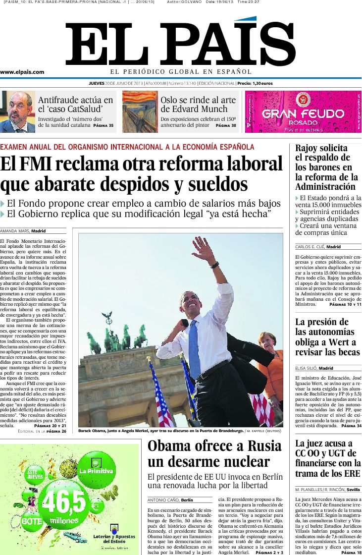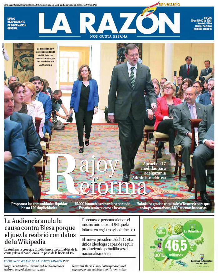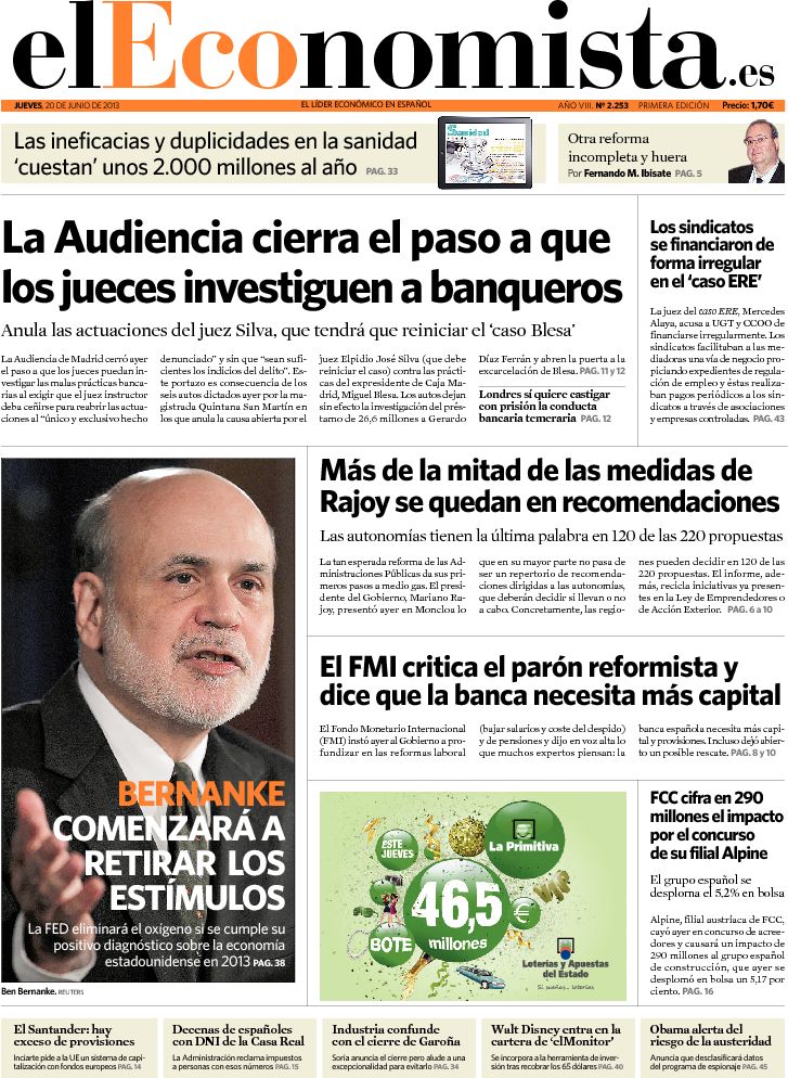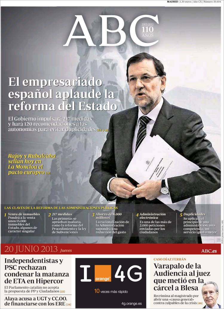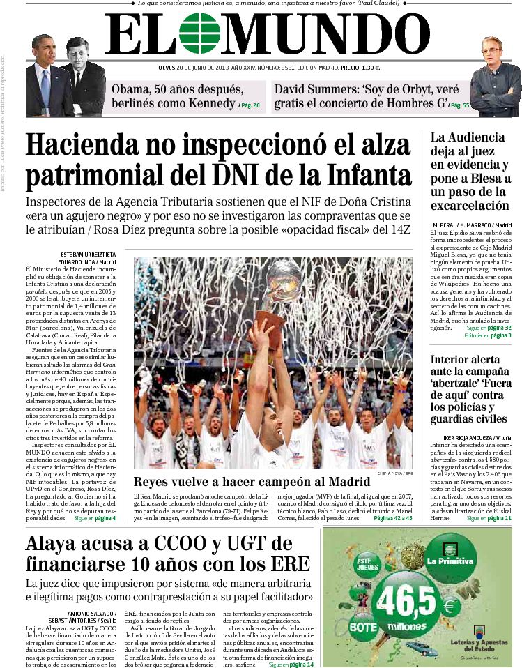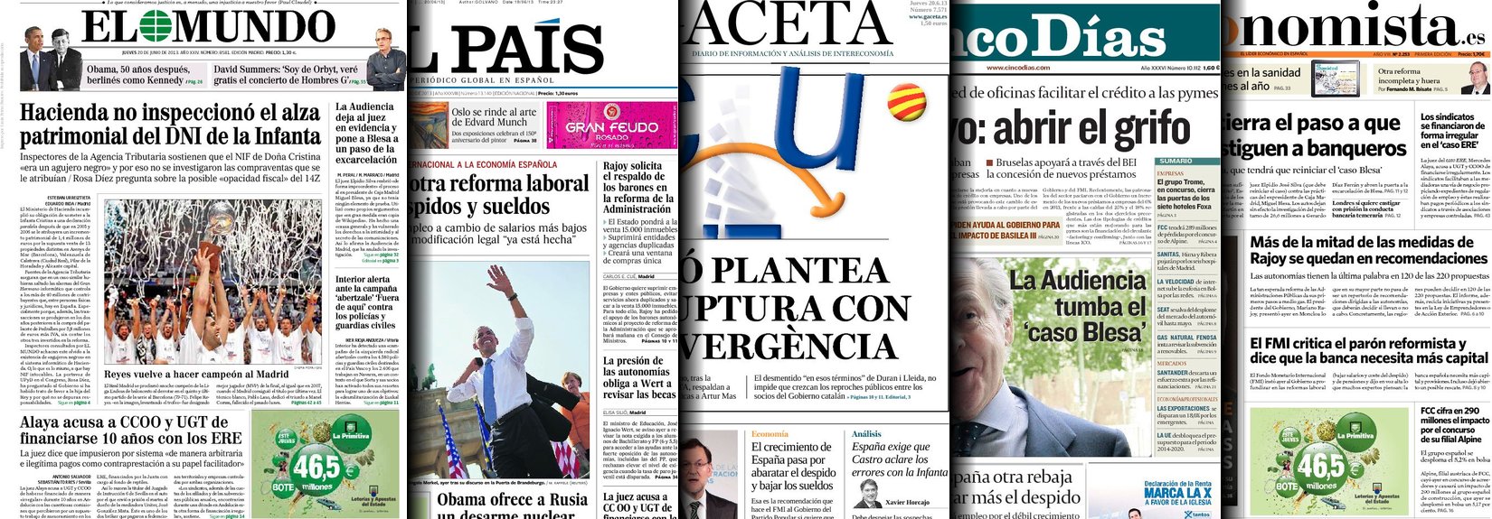 Portadas de los diarios El Mundo, El País, ABC, La Razón, La Vanguardia, La Gaceta, El Periódico, Cinco Días, El Economista, Expansión, Marca, As, Mundo Deportivo y Sport.