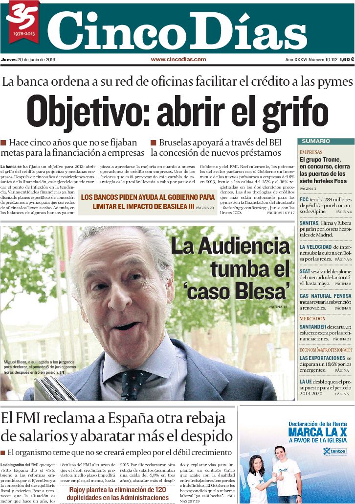 "La Audiencia cierra el paso a que los jueves investiguen a banqueros"