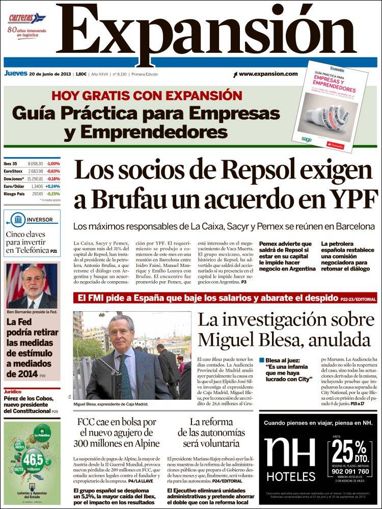 "Los socios de Repsol exigen a Brufau un acuerdo en YPF"
