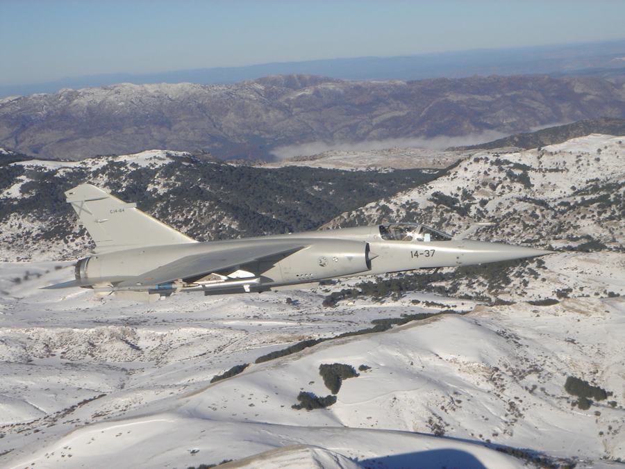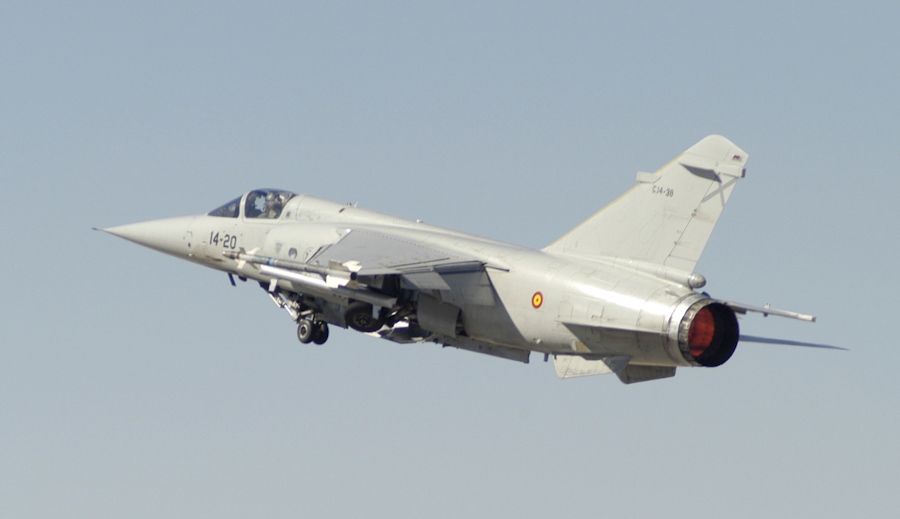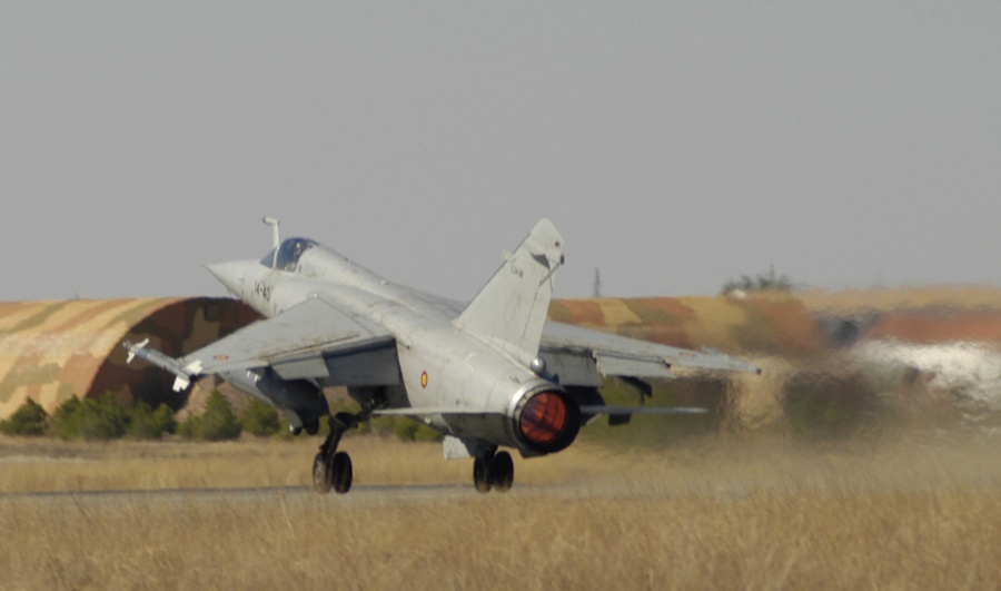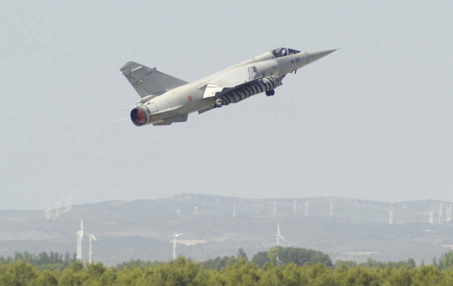 Vista lateral del Dassault Mirage F1 iniciando el vuelo en la Base Aérea de Albacete.