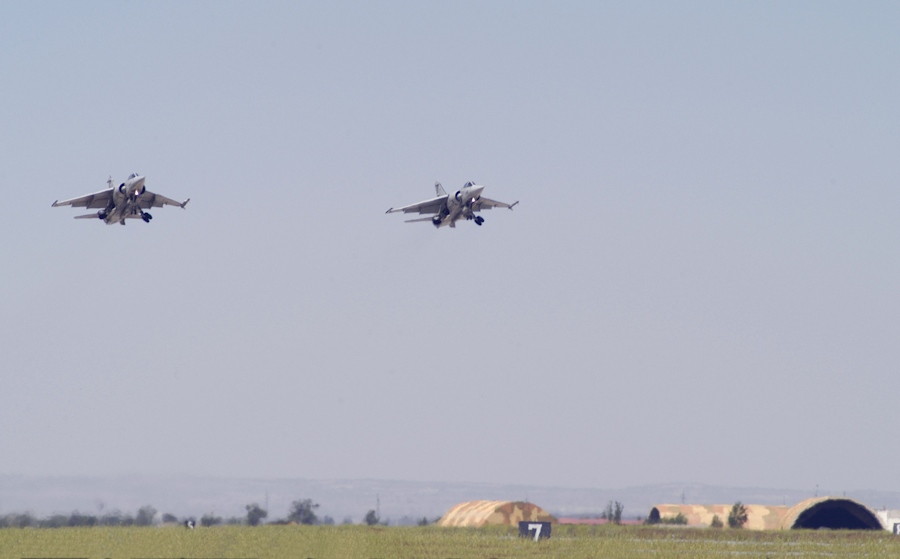 Llegada de dos Mirage F1, tras un vuelo de instrucción, a las instalaciones de la Base Aérea de Albacete.