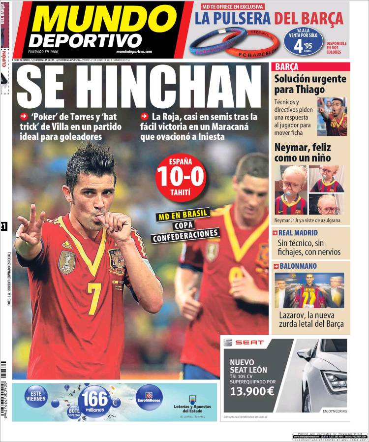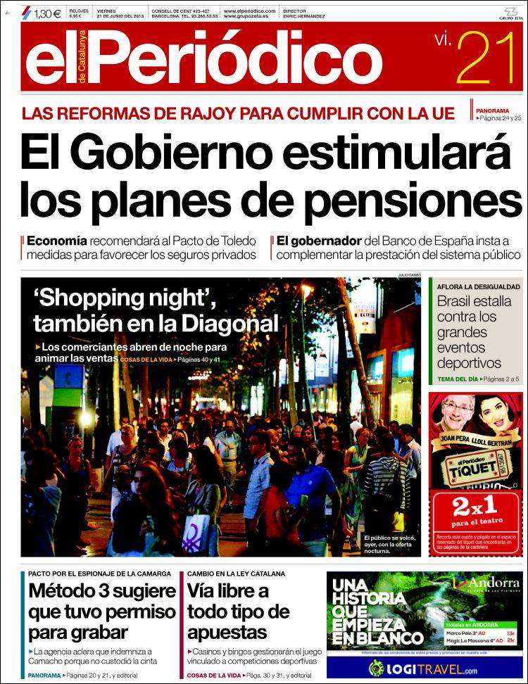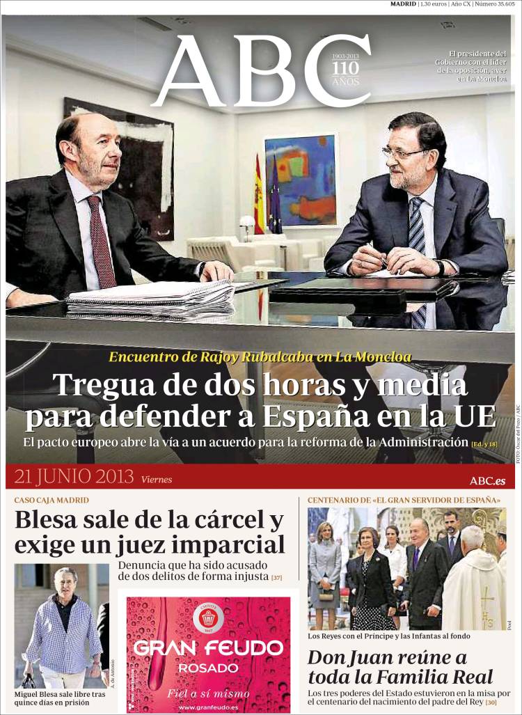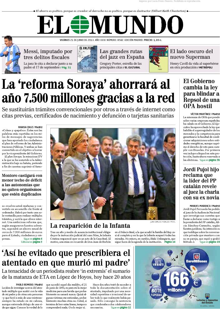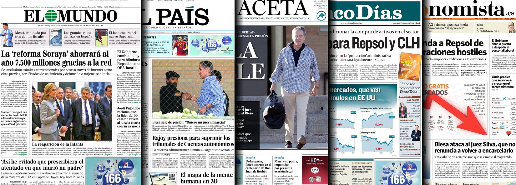 Portadas de los diarios El Mundo, El País, ABC, La Razón, La Vanguardia, La Gaceta, El Periódico, Cinco Días, El Economista, Expansión, Marca, As, Mundo Deportivo y Sport.