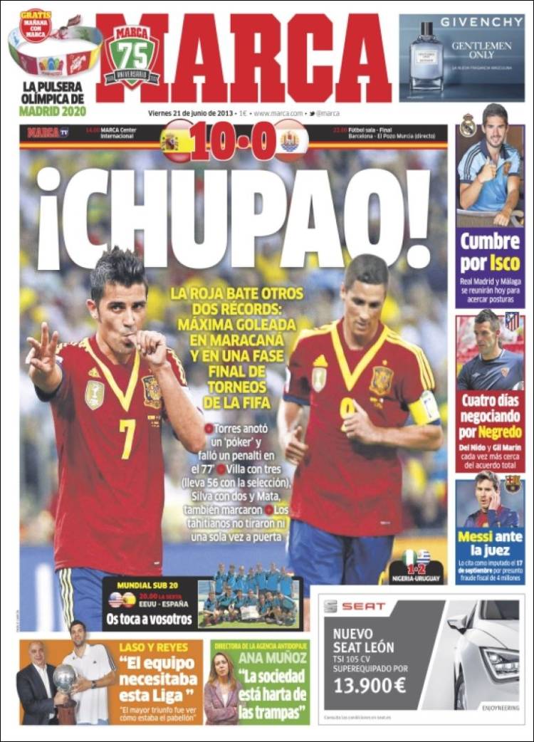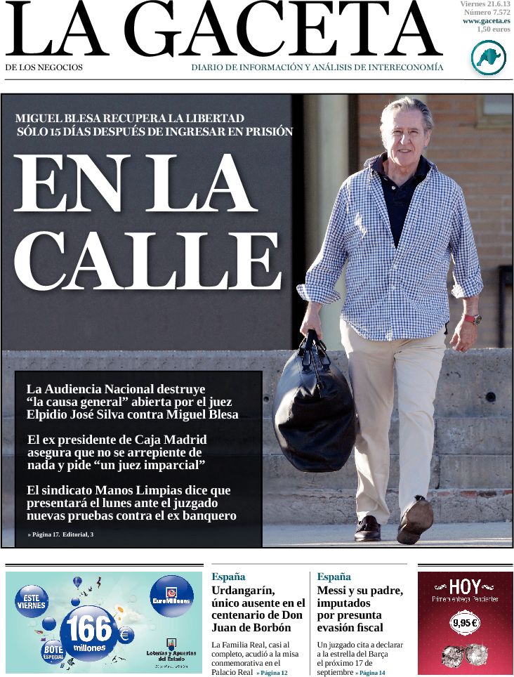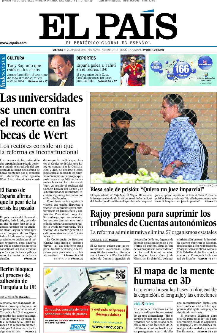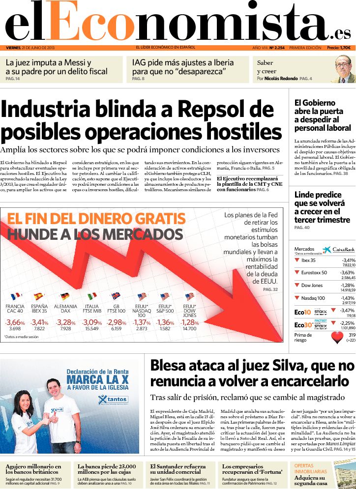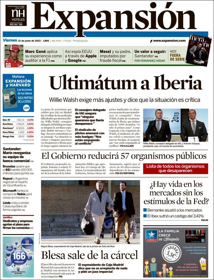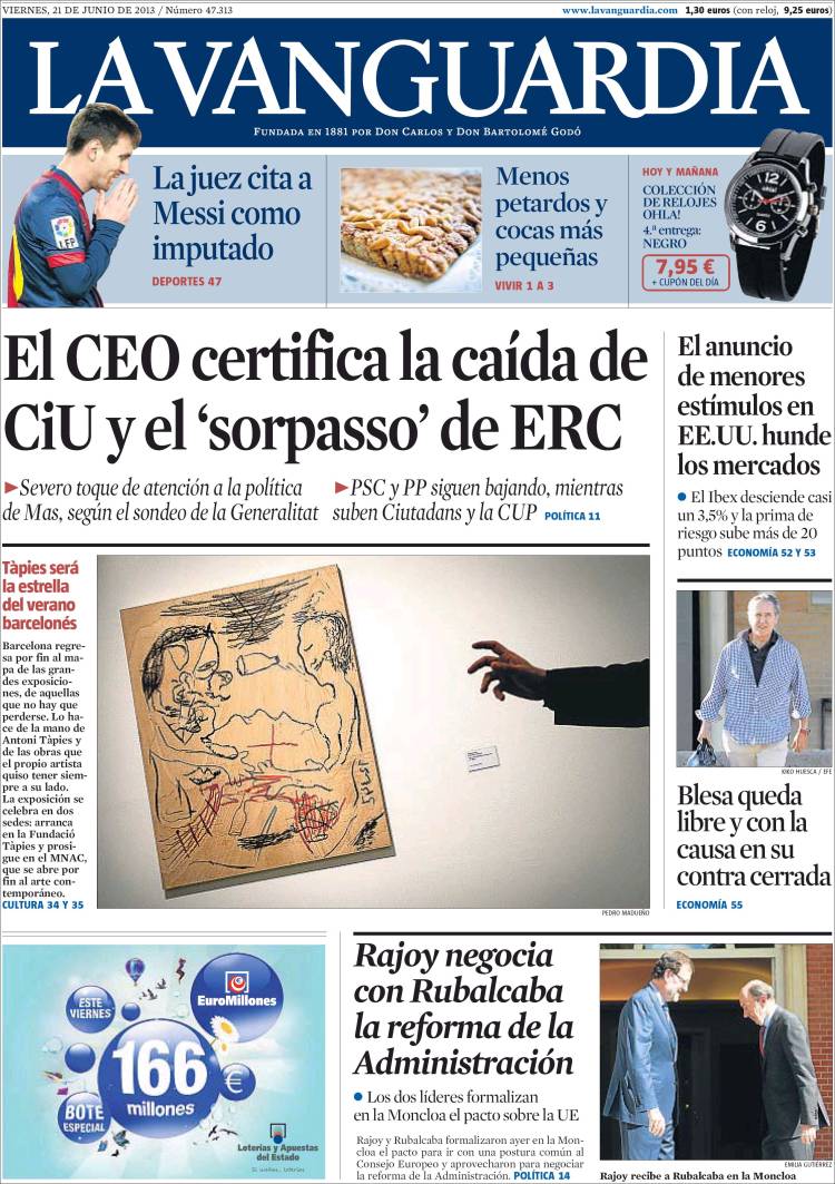 Portadas de los diarios El Mundo, El País, ABC, La Razón, La Vanguardia, La Gaceta, El Periódico, Cinco Días, El Economista, Expansión, Marca, As, Mundo Deportivo y Sport.