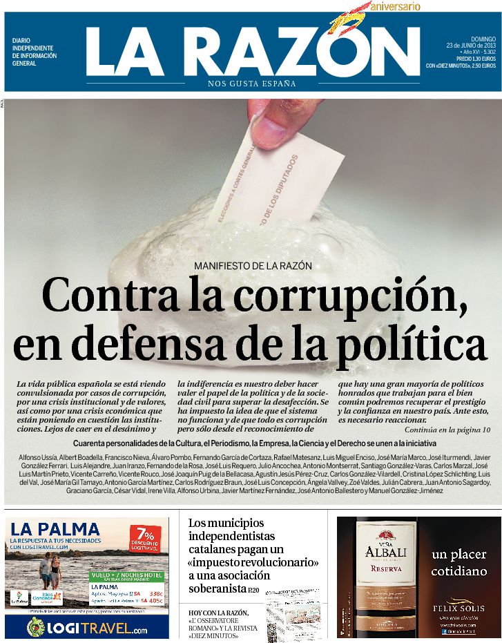 Manifiesto de La Razón "Contra la corrupción, en defensa de la política"