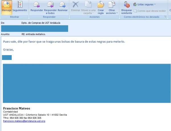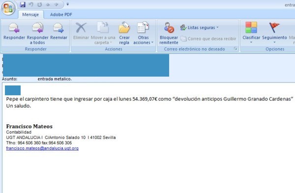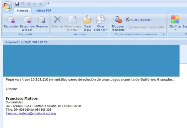 La Comisión Ejecutiva Regional de UGT Andalucía salida del congreso ordinario de UGT de 2009, cuyo diseño fue pagado adulterando un contrato para utilizar dinero público, cobró al menos parte de sus sobresueldos irregulares de 900 euros mensuales (en el caso del secretario general, Manuel Pastrana, 3.900 euros) con dinero procedente de unas bolsas negras de basura. En ellas se había amontonado dinero en metálico procedente de la extraña devolución de la base imponible de dos facturas por un importe total de 69.472,18€, que sufrieron diferentes manipulaciones en un ejercicio de ingeniería contable.