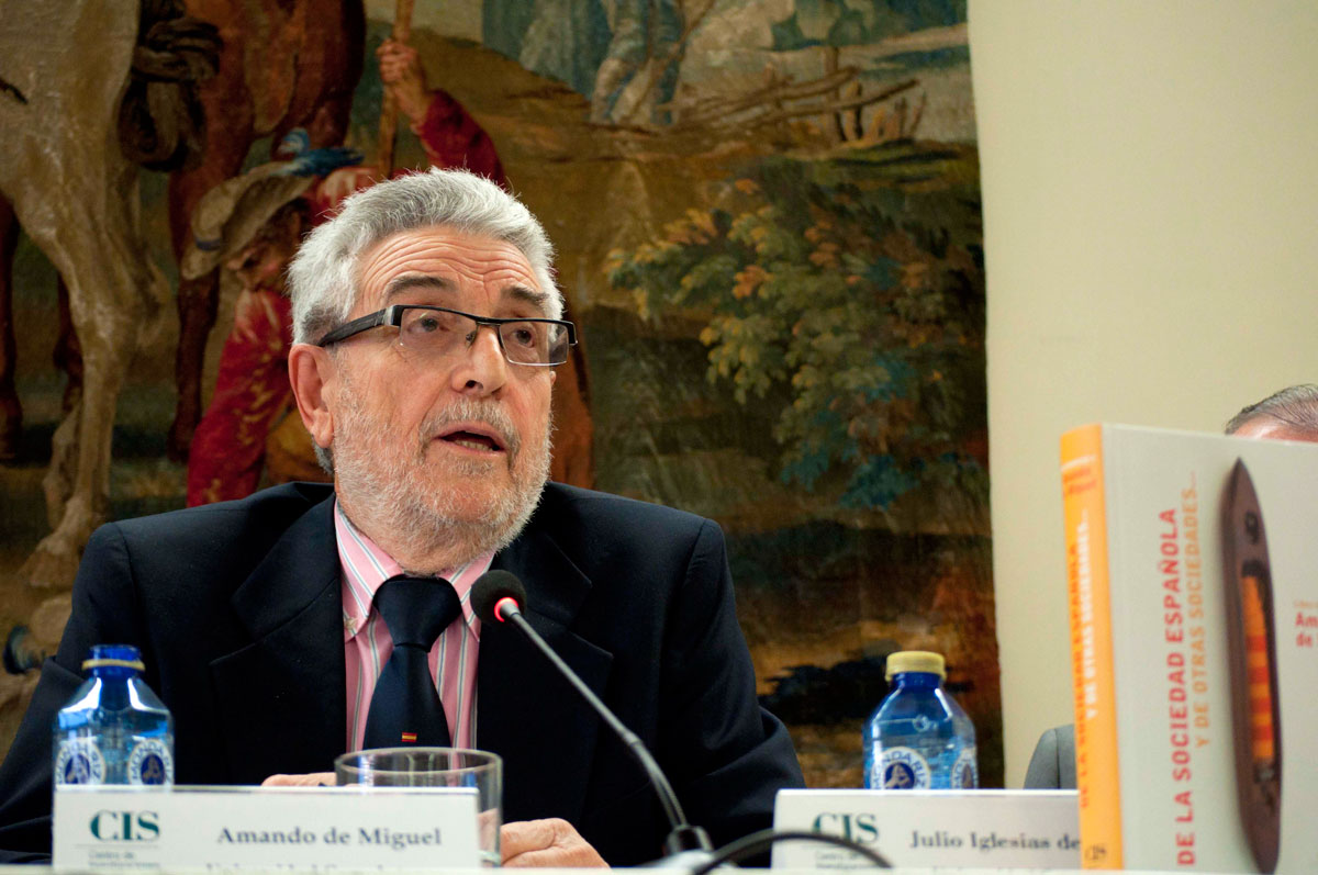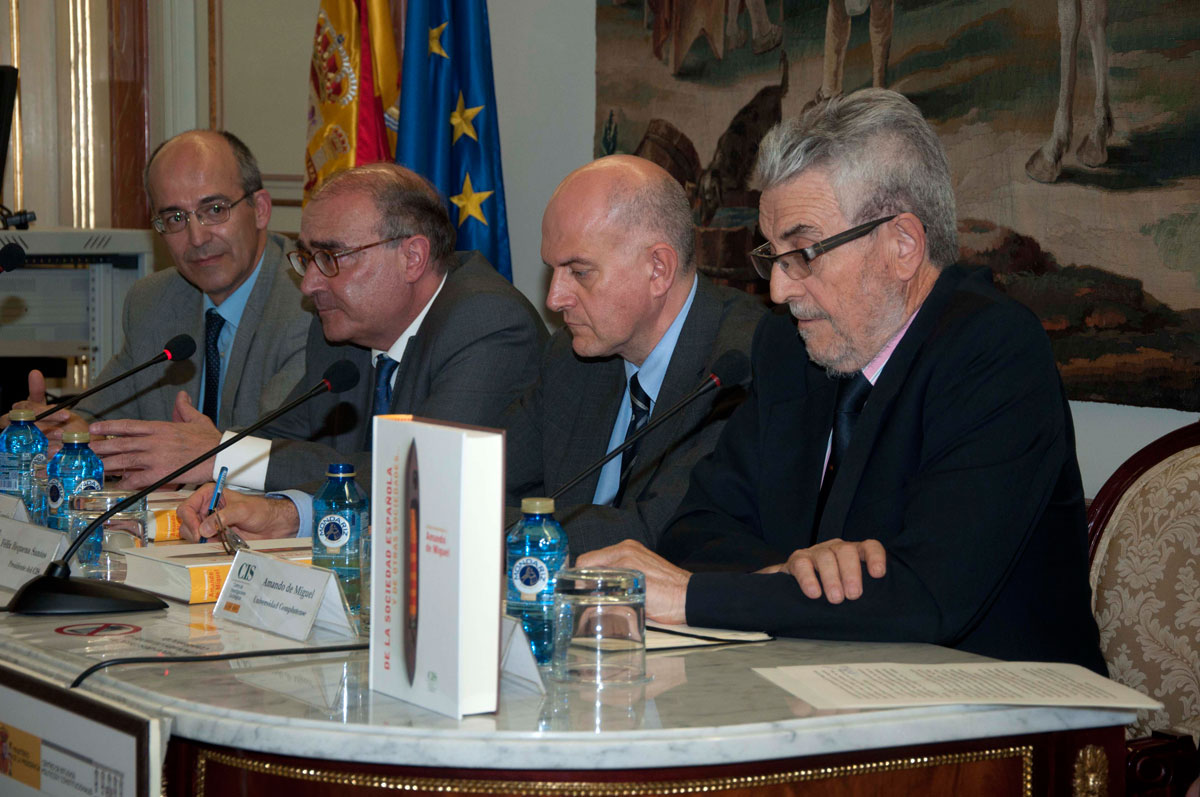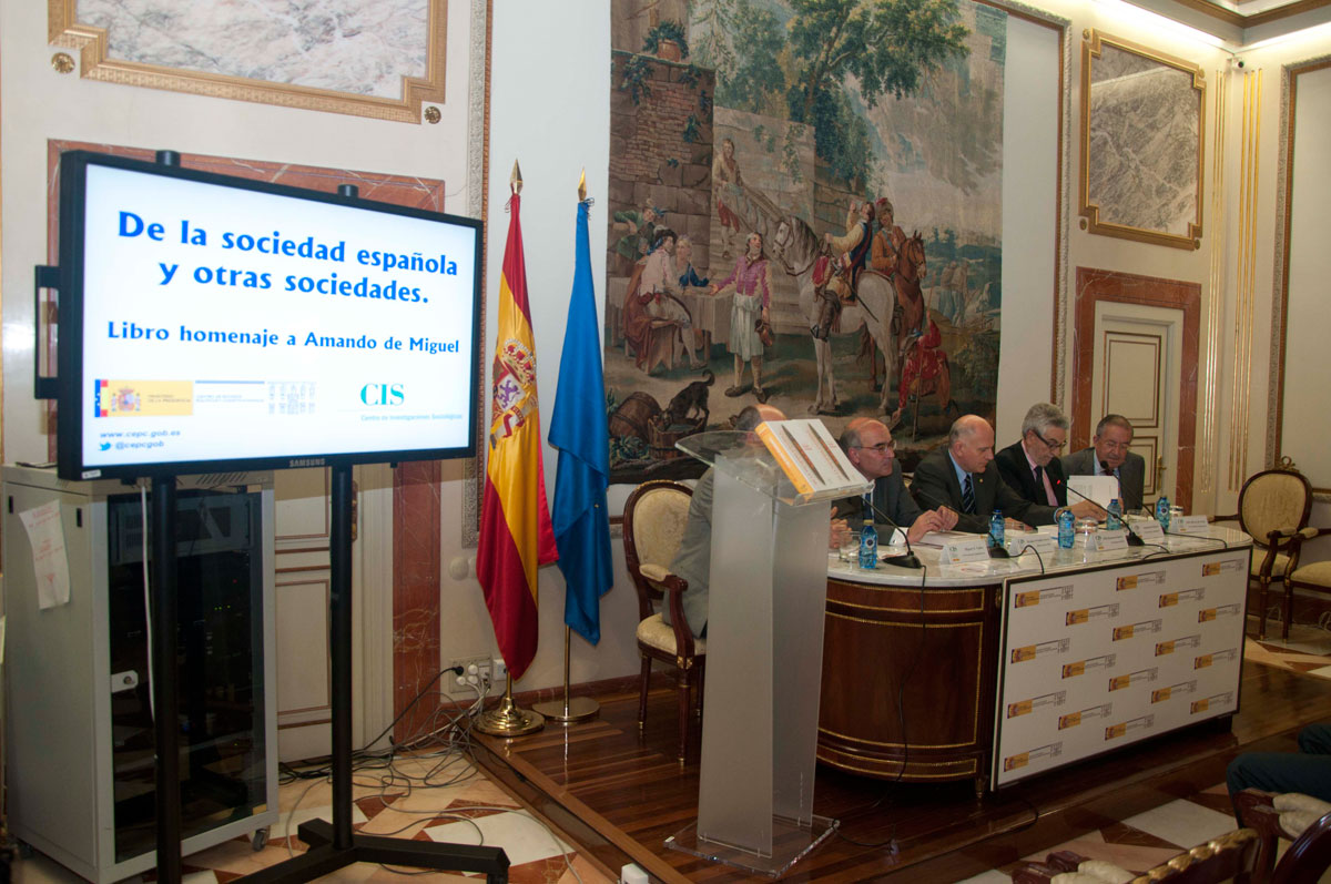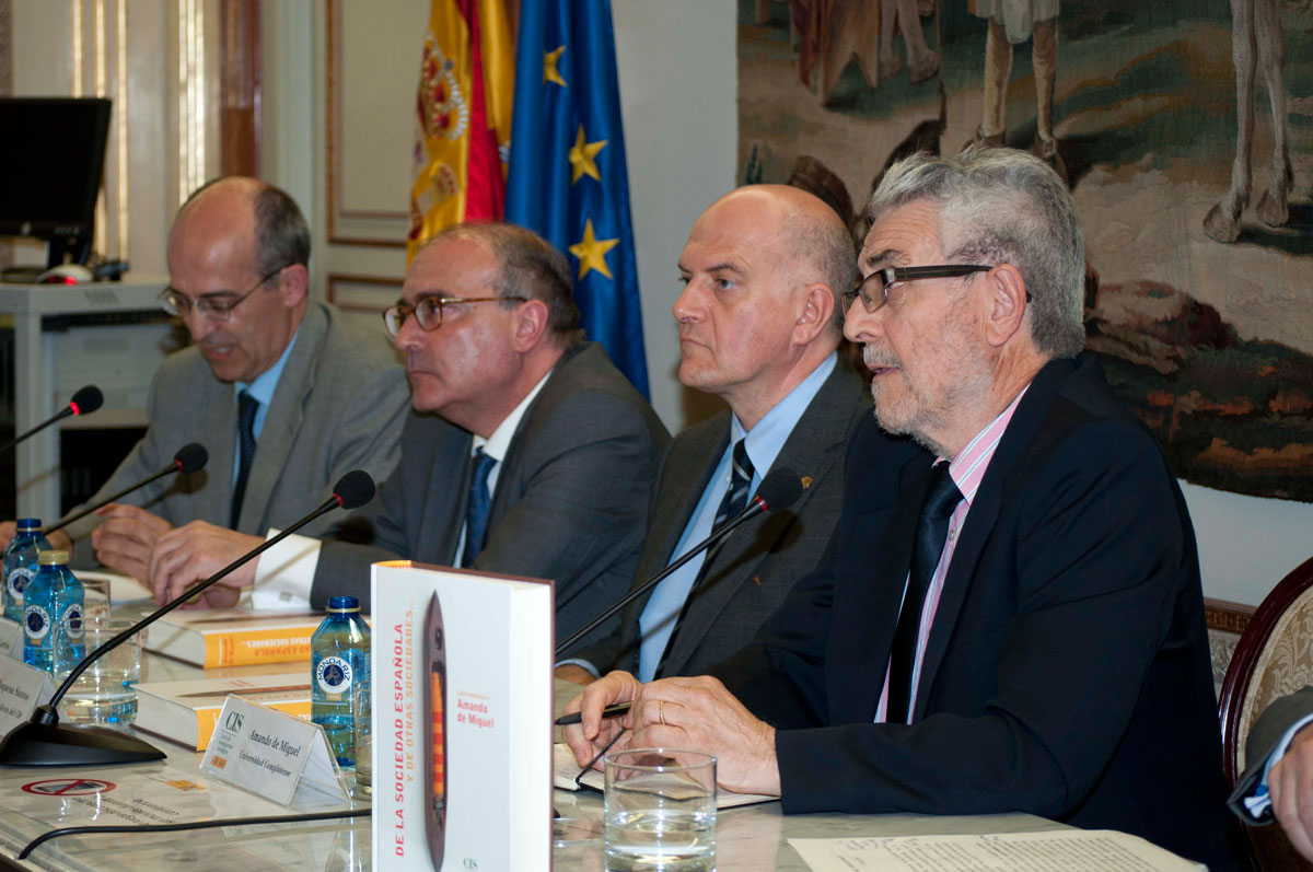 Este jueves se ha presentado en Centro de Estudios Políticos y Constitucionales (CEPC) la obra "De la sociedad española y otras sociedades Libro homenaje a Amando de Miguel", coordinado por Benjamín García Sanz, Julio Iglesias de Ussel, Jesús Martínez Paricio, Benjamín Oltra y Miguel S. Valles y editado por elCentro de Investigaciones Sociológicas