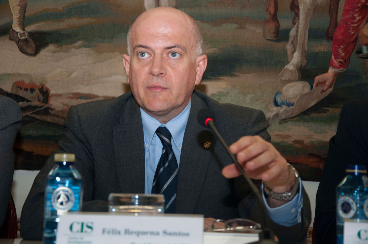 Miguel S. Valles, hablando a la sala durante la presentación del libro editado por el CIS.