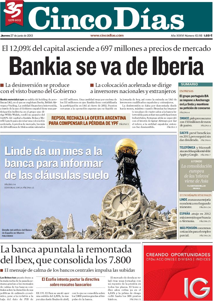 "JPMorgan aspira al 12% de Bankia en la matriz de Iberia"