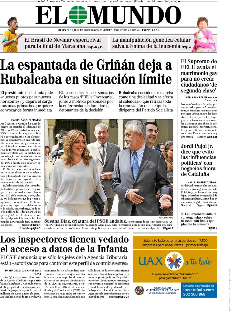 "La salida de Griñán agita el debate sobre el relevo en el PSOE"