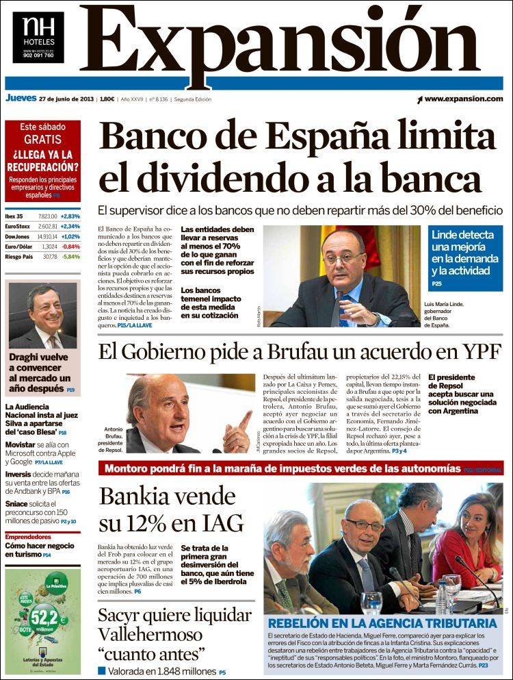 "Banco de España limita el dividendo a la banca"