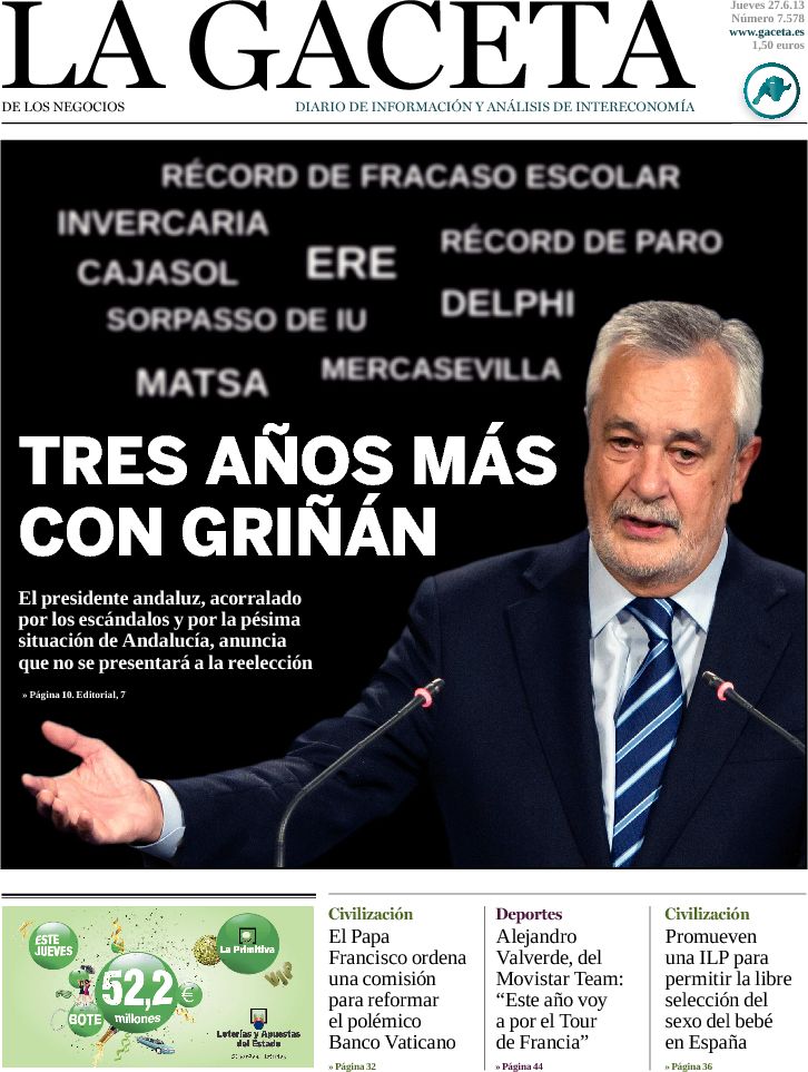 "La marcha de Griñán causa un terremoto en el PSOE"