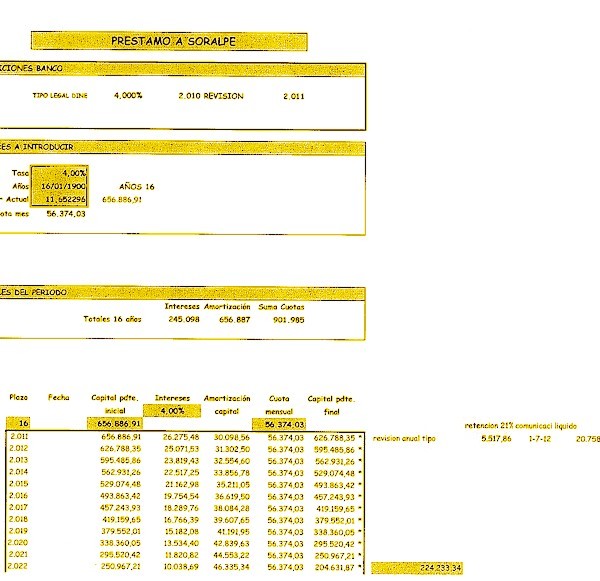 Extraños préstamos de UGT Andalucía a Soralpe I más P Asociados, donde trabajan decenas de personas a las órdenes de UGT. Con dinero de la UGT, además de viviendas, se hacen préstamos a Soralpe por diferentes importes en lo que parece una contabilidad compartida. De hecho, ha tenido varios y el que sigue es uno de ellos: