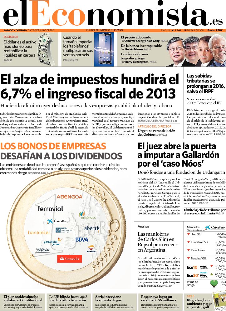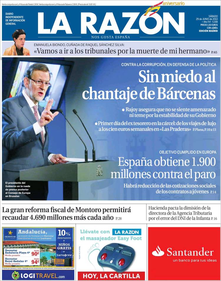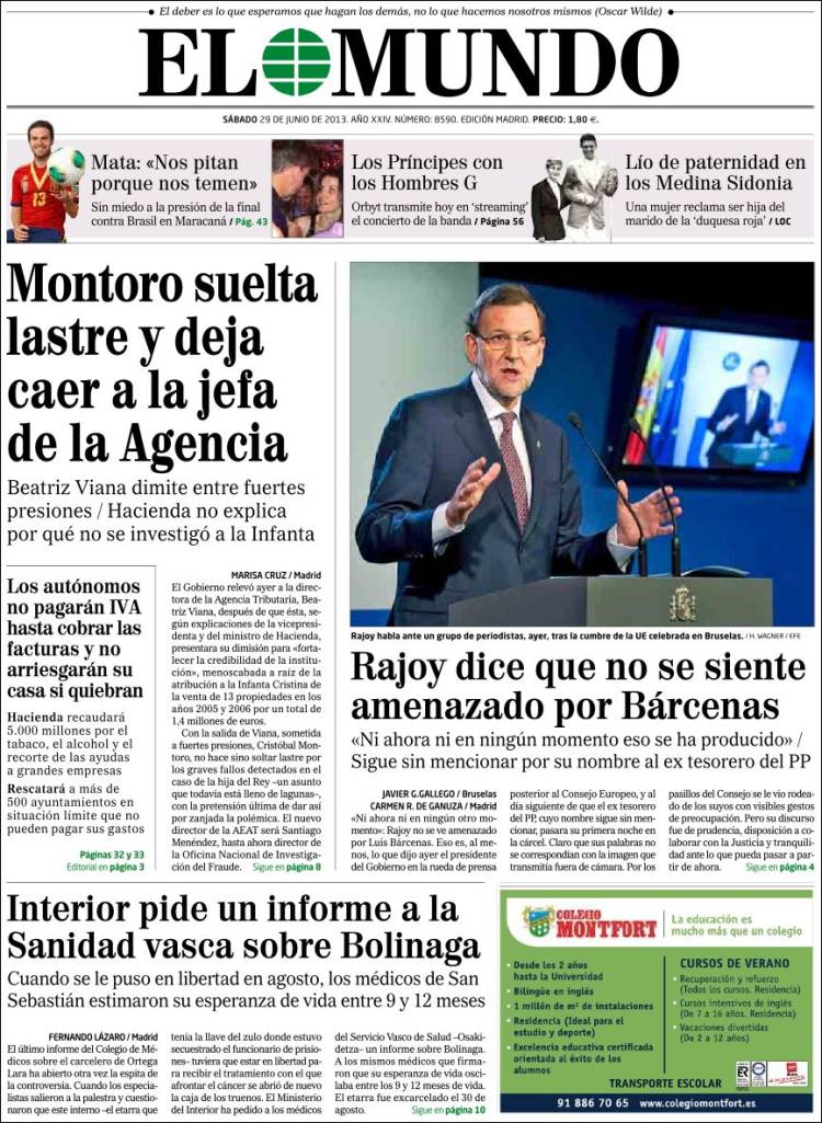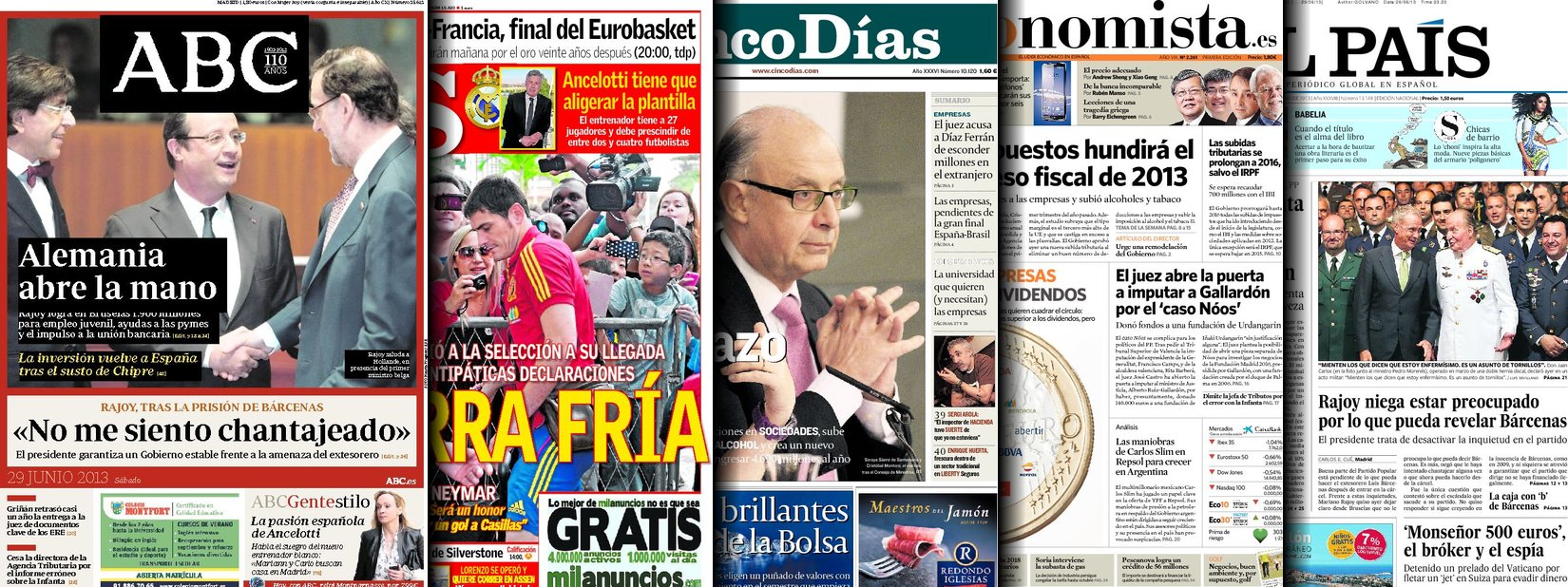 Portadas de los diarios El Mundo, El País, ABC, La Razón, La Gaceta, La Vanguardia, El Periódico, Expansión, el Economista, Cinco Días, Marca, As, Sport y Mundo Deportivo.