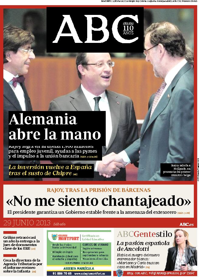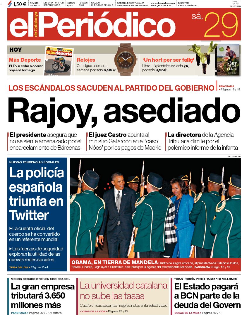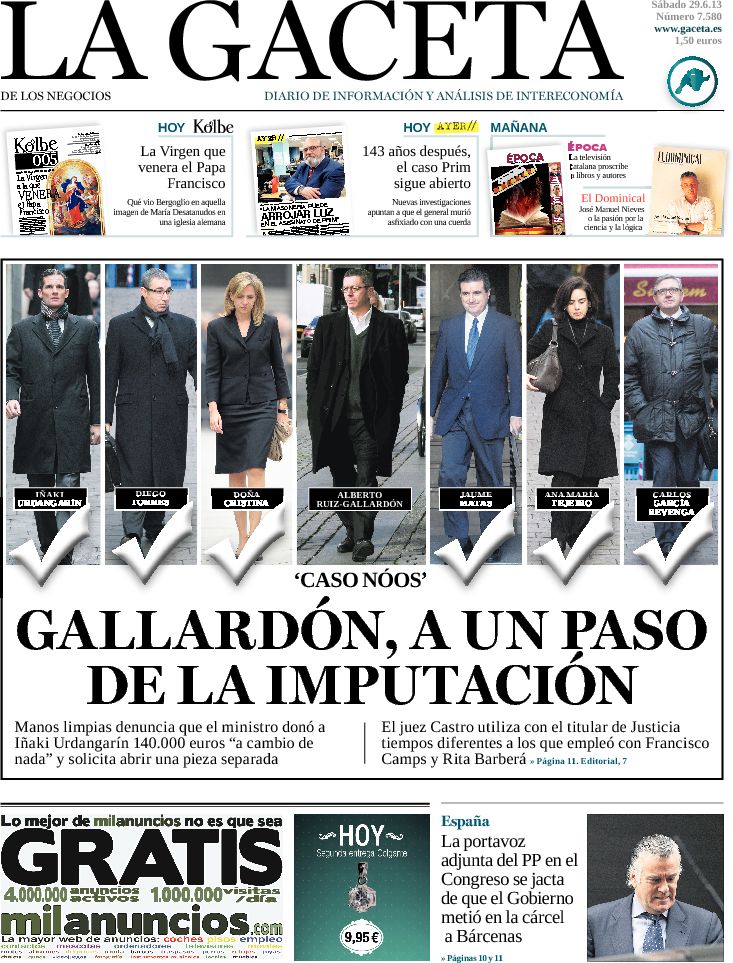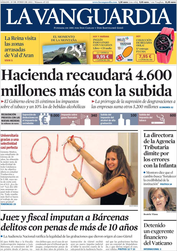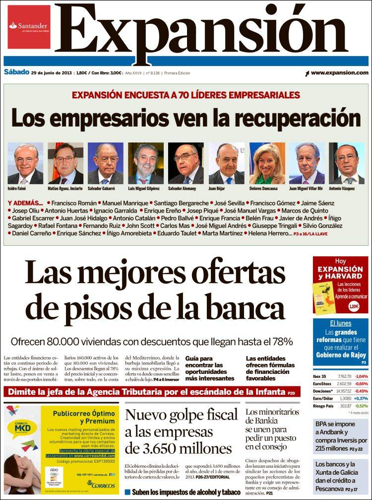 Portadas de los diarios El Mundo, El País, ABC, La Razón, La Gaceta, La Vanguardia, El Periódico, Expansión, el Economista, Cinco Días, Marca, As, Sport y Mundo Deportivo.
