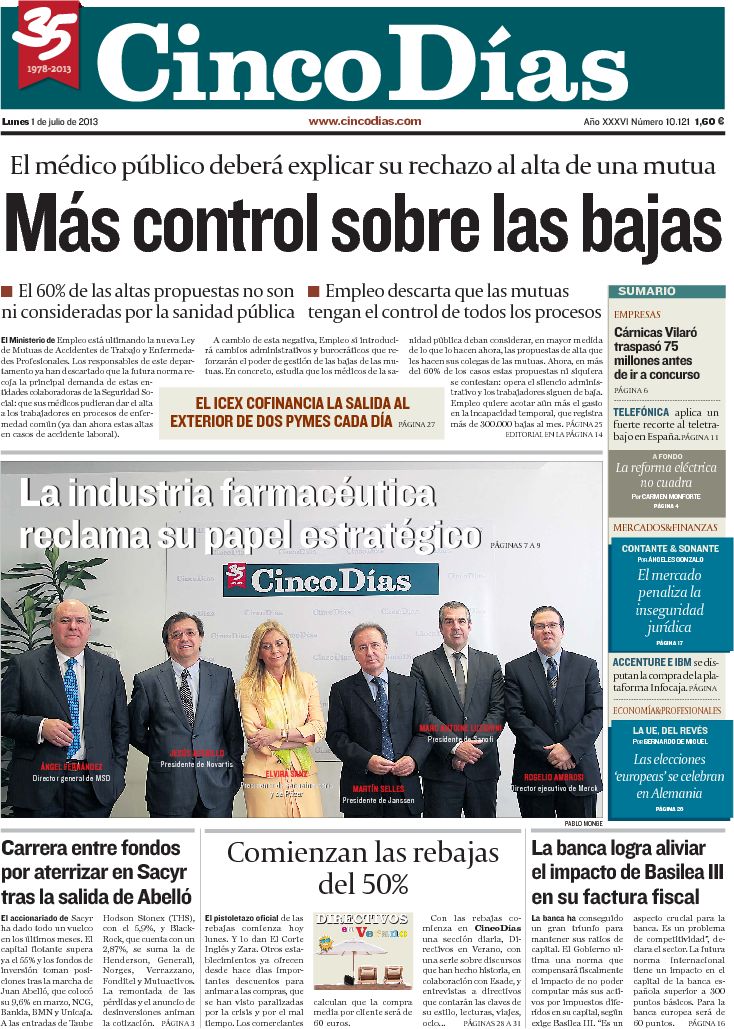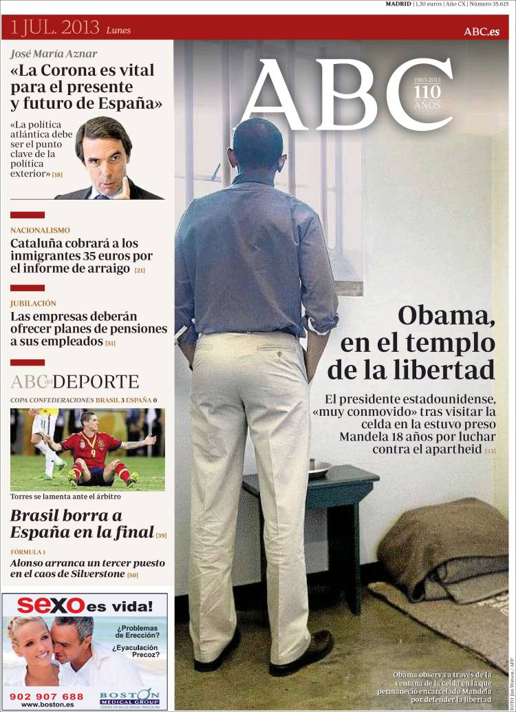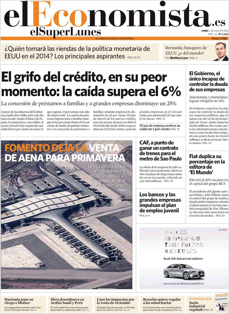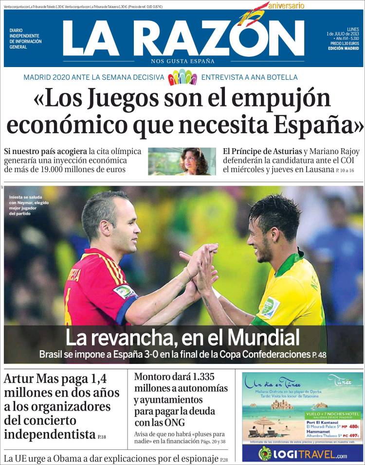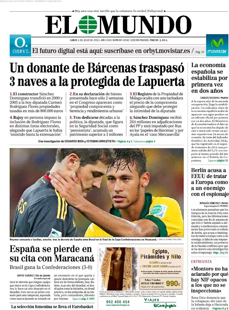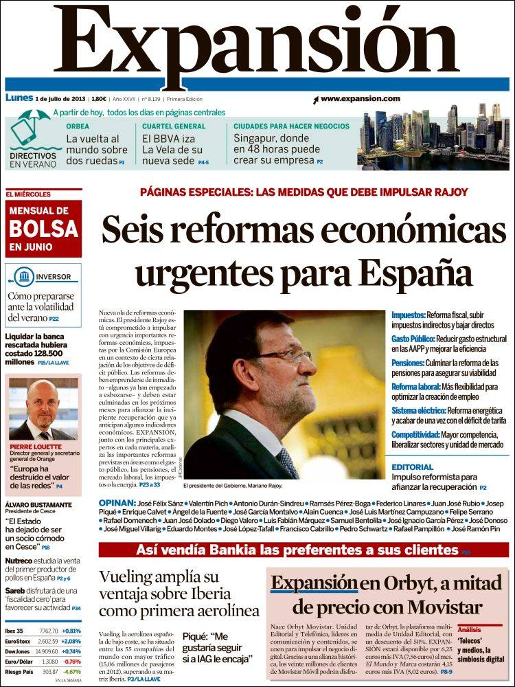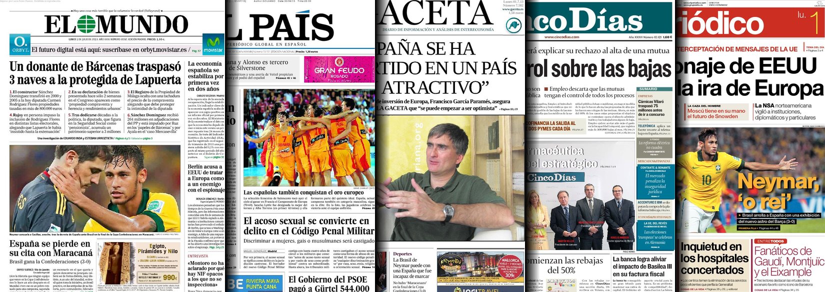 Portadas de los diarios El Mundo, El País, ABC, La Razón, La Gaceta, La Vanguardia, El Periódico, Expansión, el Economista, Cinco Días, Marca, As, Mundo Deportivo y Sport.