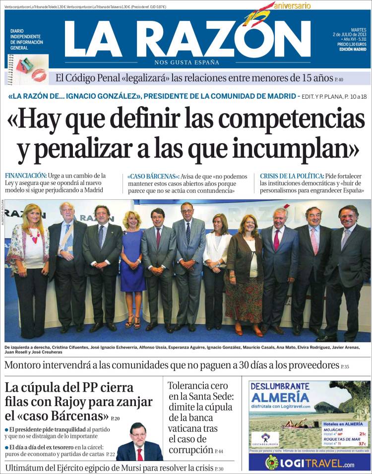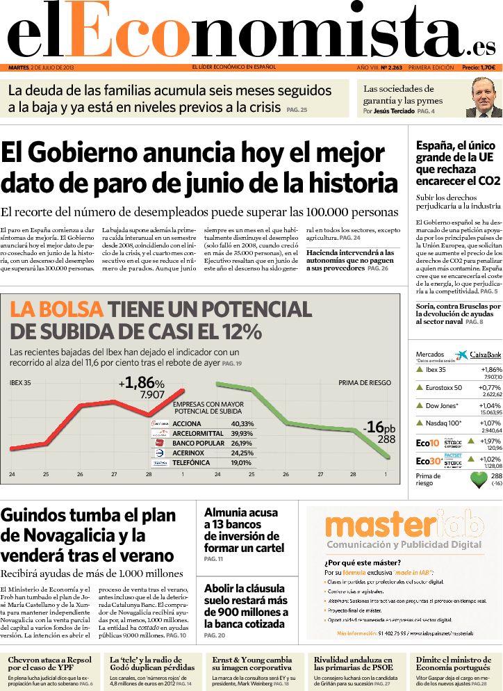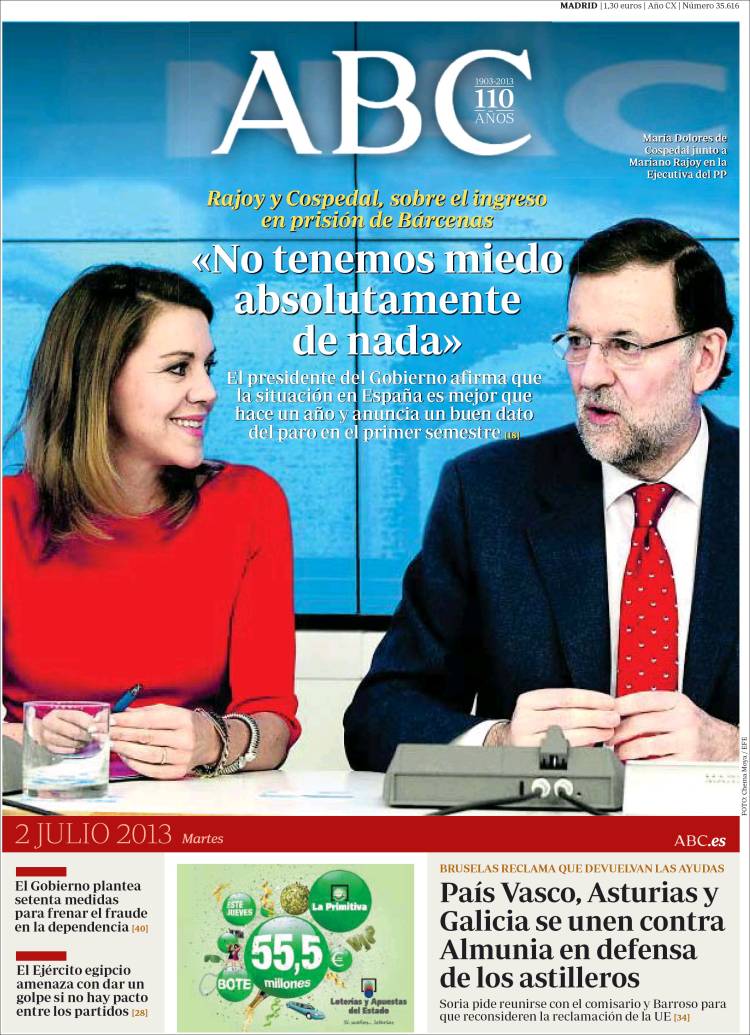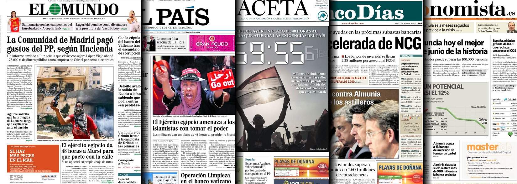 Portadas de los diarios El Mundo, El País, ABC, La Razón, La Gaceta, La Vanguardia, El Periódico, Expansión, el Economista, Cinco Días, Marca, As, Mundo Deportivo y Sport.
