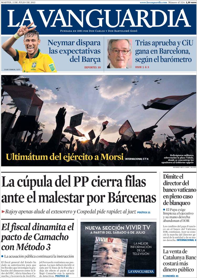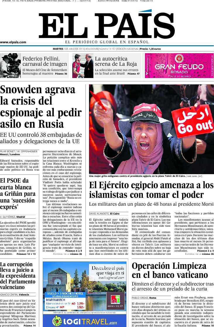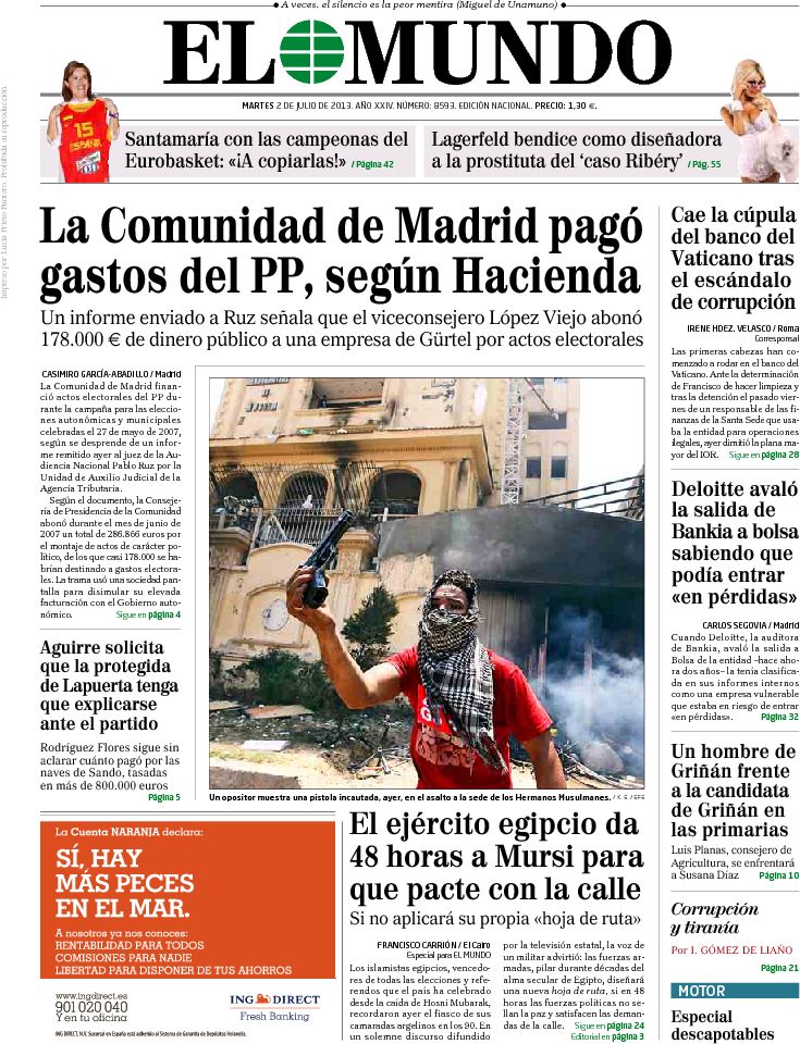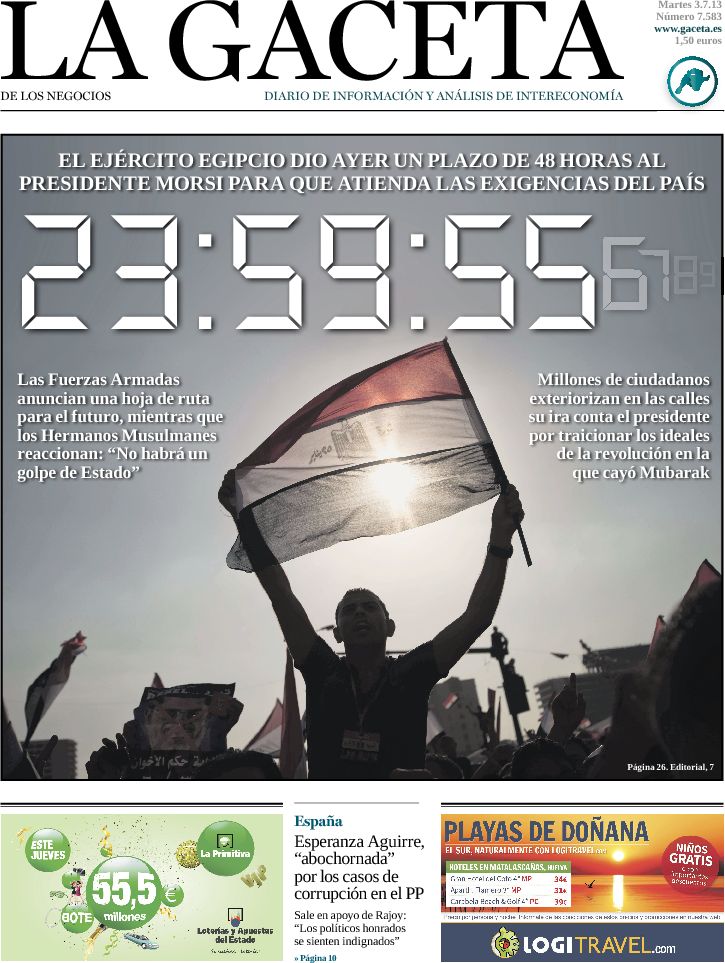"El Ejército egipcio dio ayer un plazo de 48 horas al presidente Morsi para que atienda las exigencias del país"