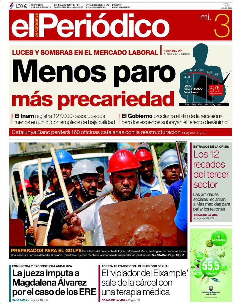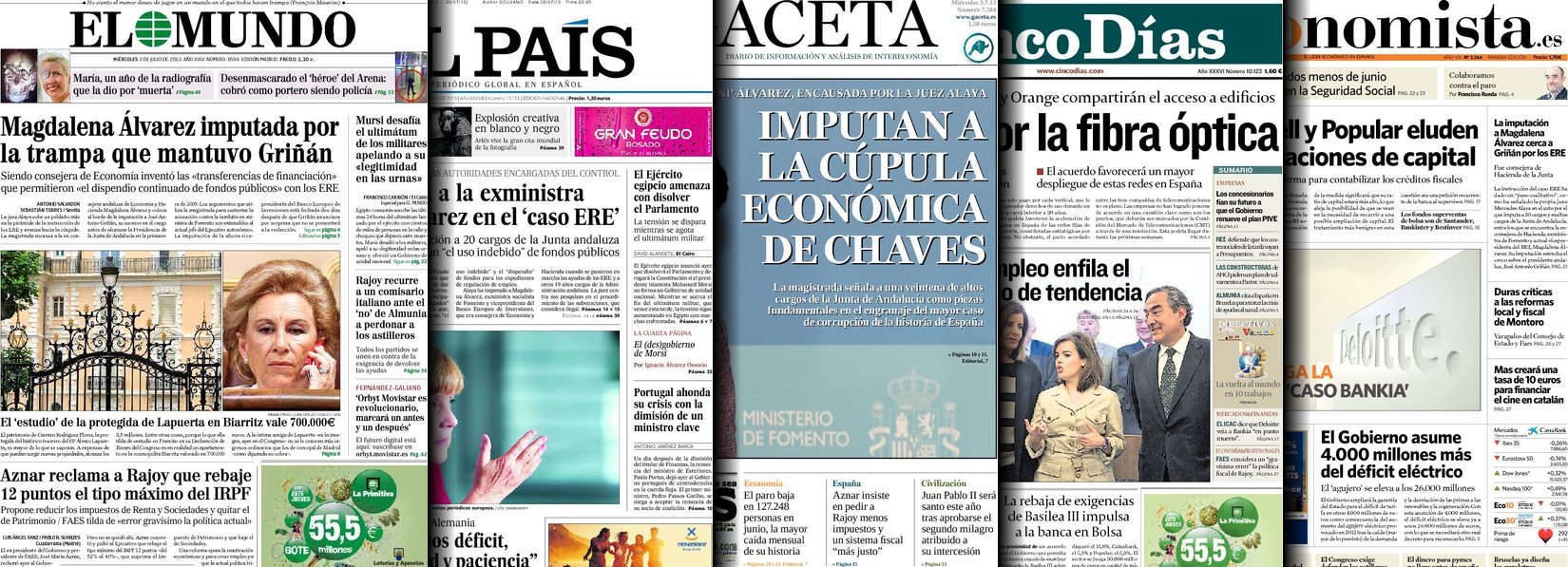 Portadas de los diarios El Mundo, El País, ABC, La Razón, La Gaceta, La Vanguardia, El Periódico, Expansión, el Economista, Cinco Días, Marca, As, Sport y Mundo Deportivo.