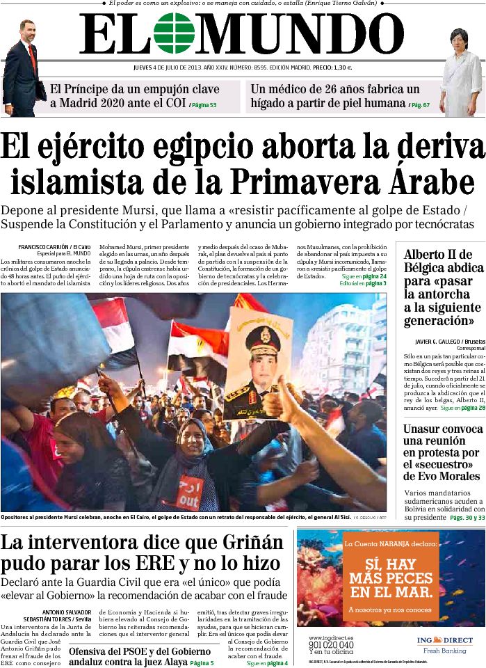 "El ejército egipcio aborta la deriva islamista de la Primavera Árabe"