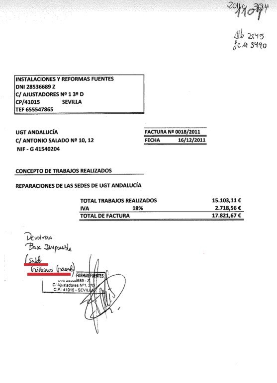 Como publicamos el pasado día 26 de junio de 2013, la Comisión Ejecutiva Regional de UGT Andalucía salida del congreso ordinario de UGT de 2009, cuyo diseño fue pagado adulterando un contrato para utilizar dinero público de subvenciones, cobró al menos parte de sus sobresueldos irregulares de 900 euros mensuales (en el caso del secretario general, Manuel Pastrana, 3.900 euros) con dinero procedente de unas bolsas negras de basura. En ellas se había amontonado dinero en metálico procedente de la extraña devolución de la base imponible de dos facturas por un importe total de 69.472,18€, que sufrieron diferentes manipulaciones en un ejercicio de ingeniería contable.