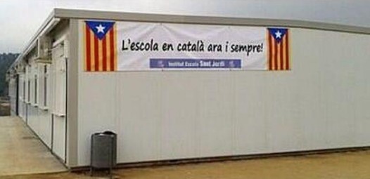 Aumentan los símbolos nacionalistas, como las ‘esteladas’, pancartas con eslóganes como "L´escola en catalá ara i siempre! (¡La escuela en catalán ahora y siempre!), que se encuentra en la fachada de la escuela pública de la localidad barcelonesa de Navás, o el sesgo político en libros de texto y materiales de estudio.