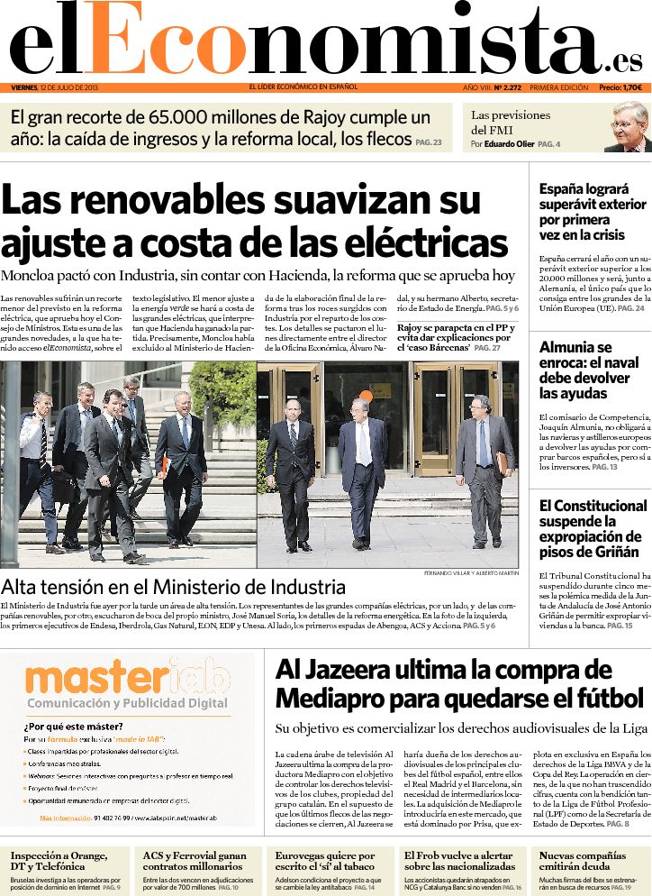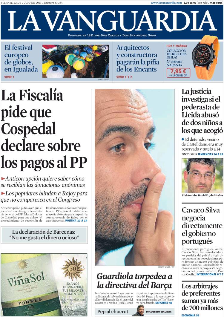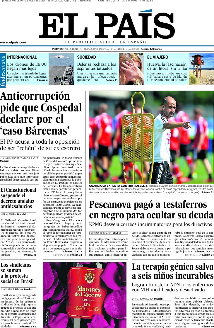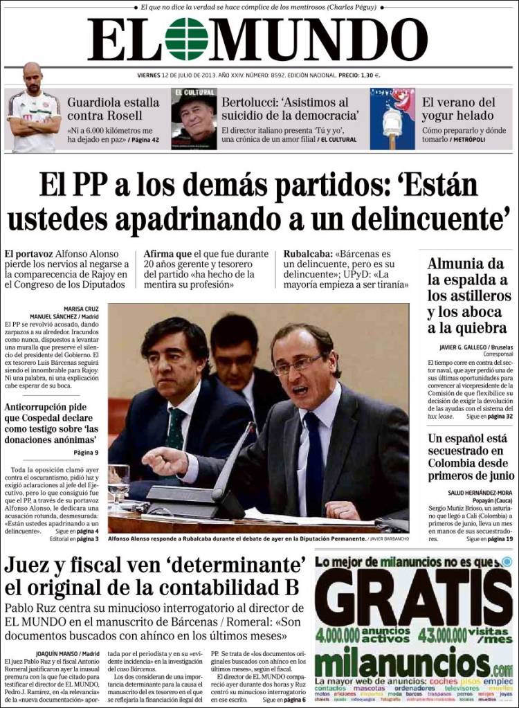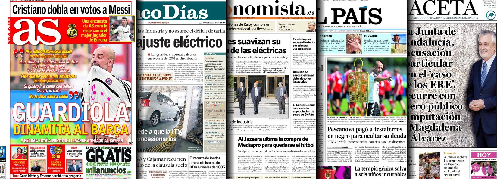 Portadas de los diarios El Mundo, El País, ABC, La Razón, La Vanguardia, La Gaceta, El Periódico, Cinco Días, El Economista, Expansión, Marca, As, Mundo Deportivo y Sport.