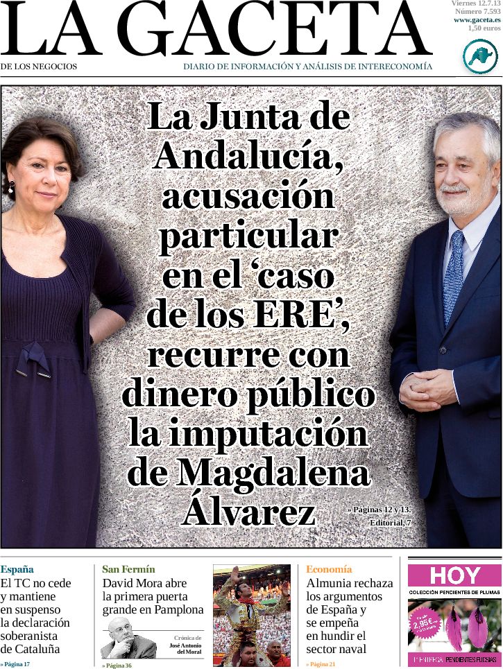 "La Junta de Andalucía, acusación particular en el 'caso de los ERE', recurre con dinero público la imputación de Magdalena Álvarez"