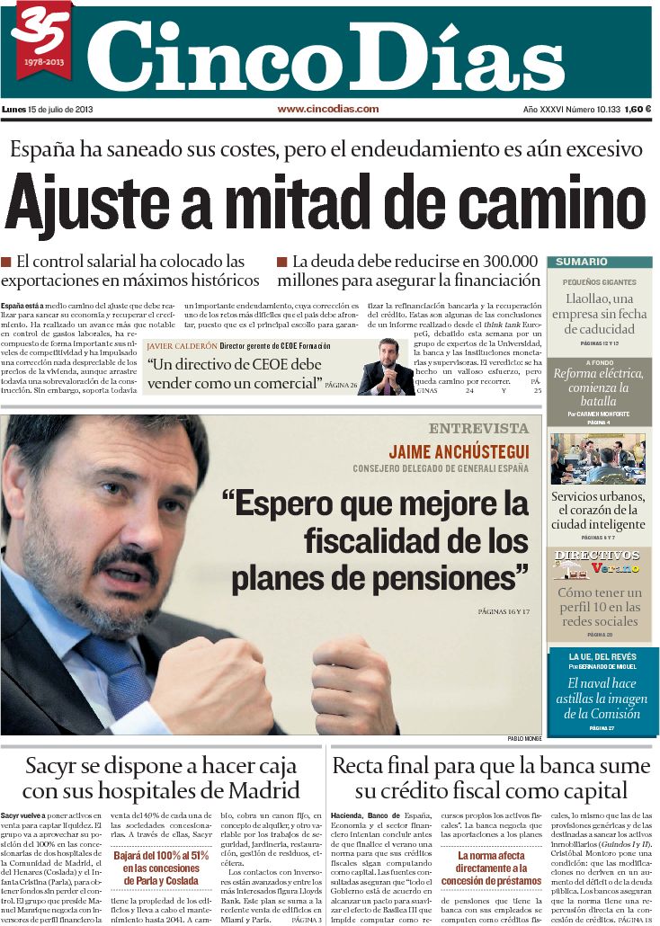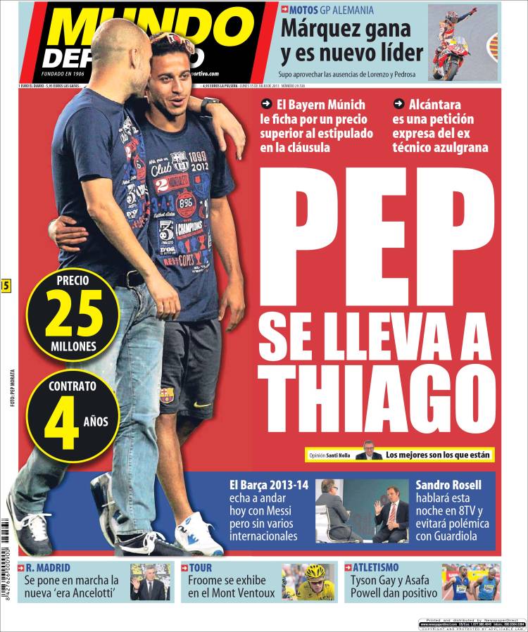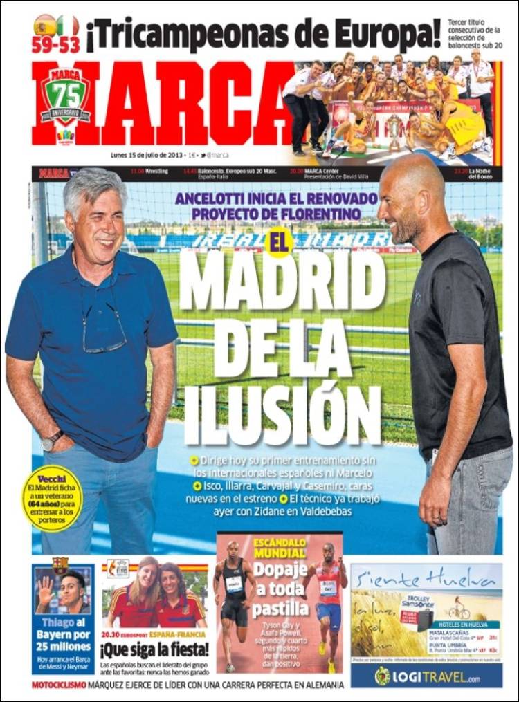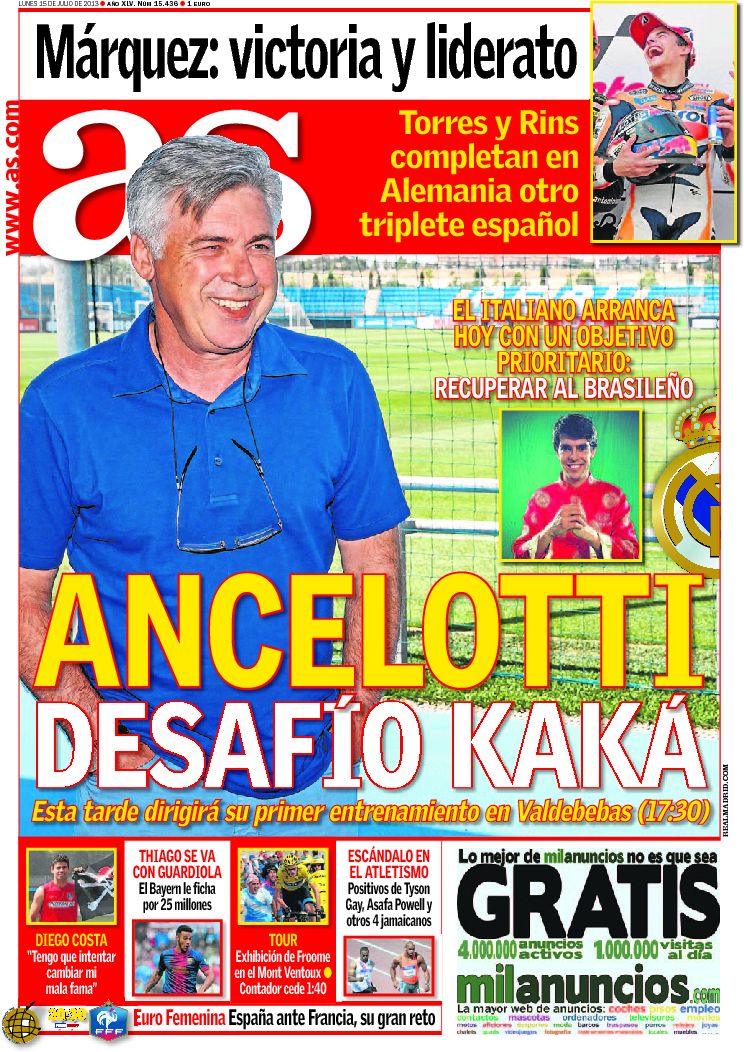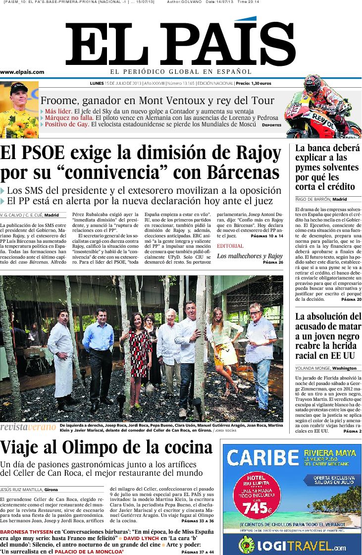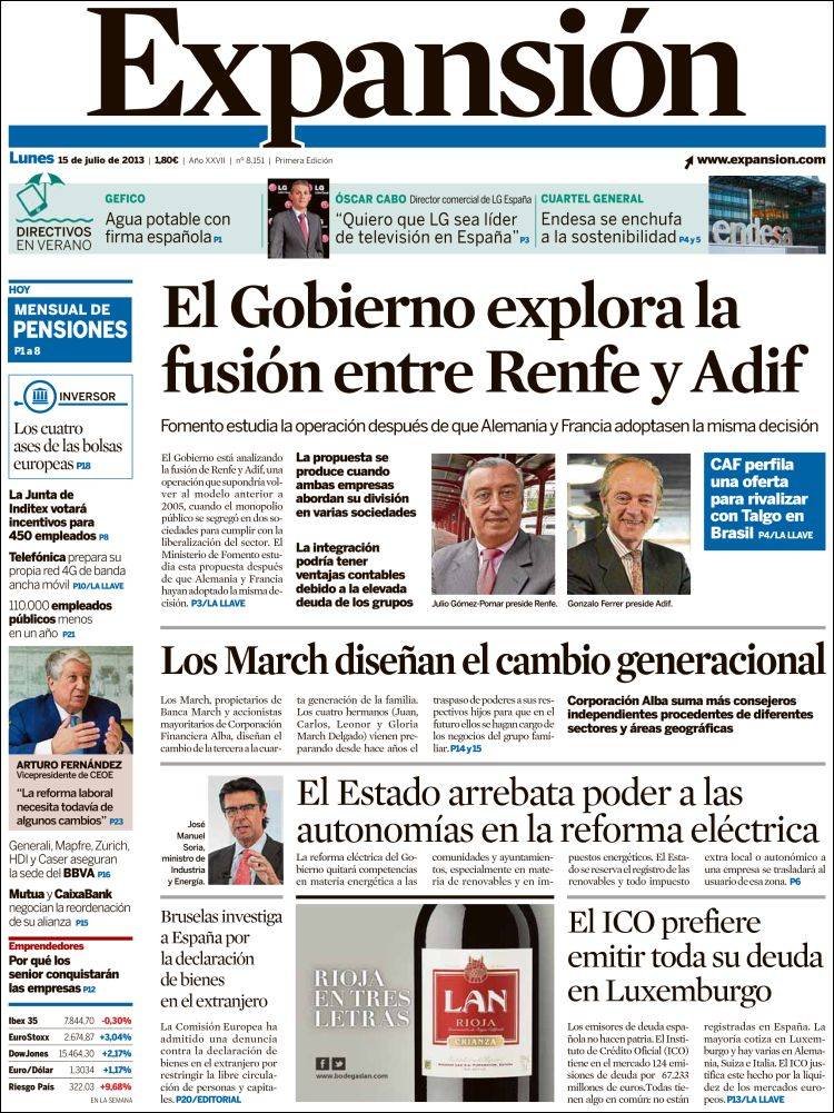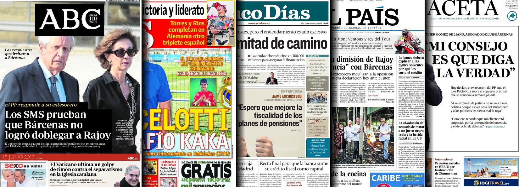 Portadas de los diarios El Mundo, El País, ABC, La Razón, La Vanguardia, La Gaceta, El Periódico, Cinco Días, El Economista, Expansión, Marca, As, Mundo Deportivo y Sport.