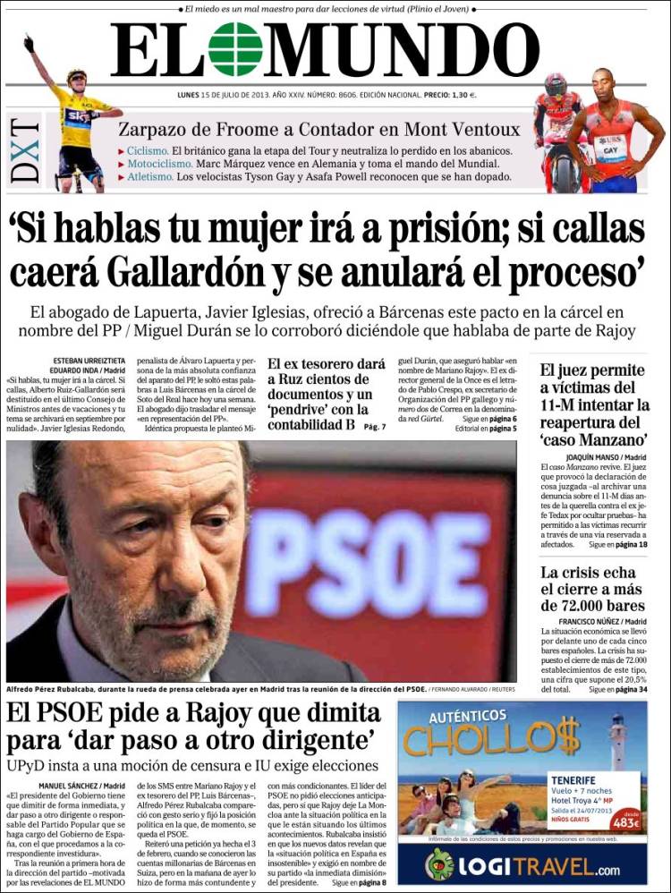 " 'Si hablas tu mujer irá a prisión; si callas caerá Gallardón y se anulará el proceso' "
