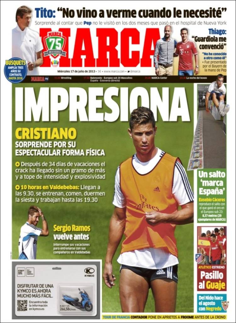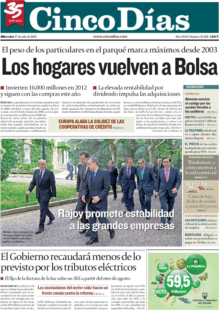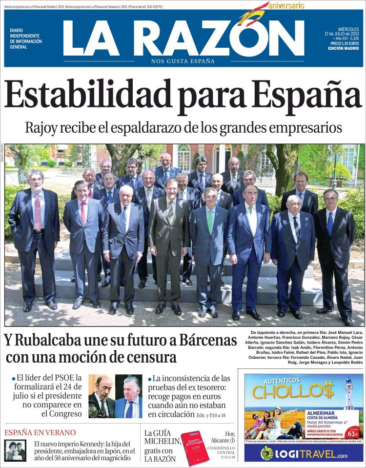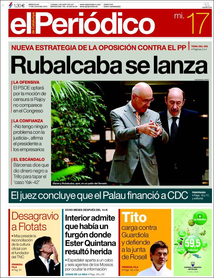 Portadas de los diarios El Mundo, El País, ABC, La Razón, La Vanguardia, La Gaceta, El Periódico, Cinco Días, El Economista, Expansión, Marca, As, Mundo Deportivo y Sport.