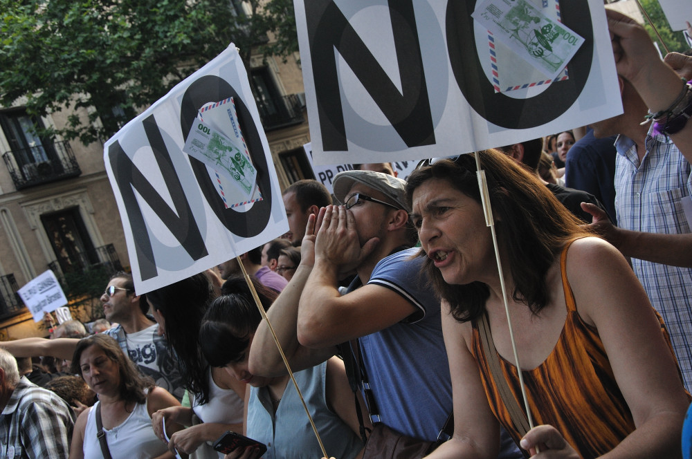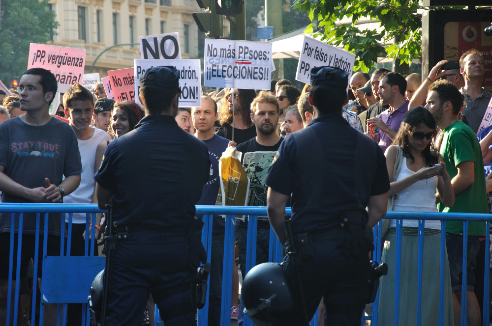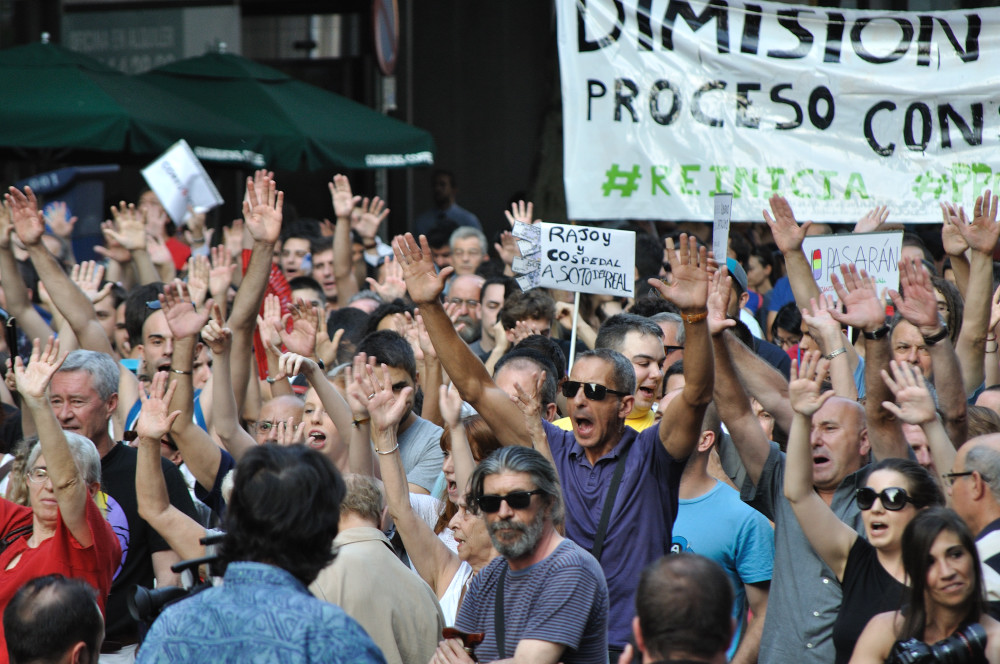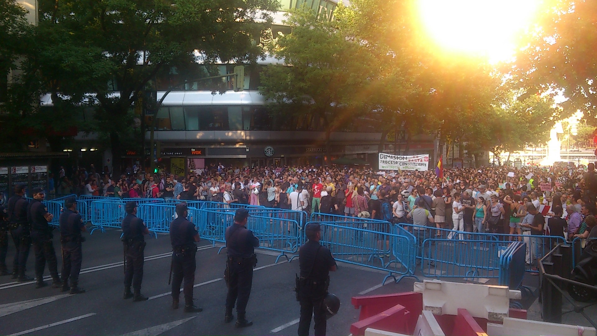 Cientos de personas se han concentrado frente a la sede del PP en la calle Génova convocados a través de las redes sociales. IU ha utilizado también su cuenta de Twitter para llamar a salir a la calle y pedir la dimisión del Gobierno.