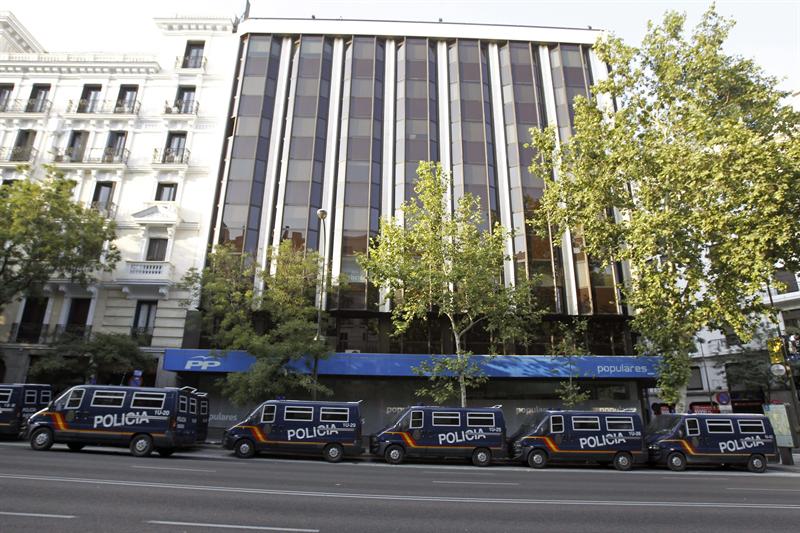 Un fuerte cordón policial protegía el acceso a la calle Génova, lugar donde se encuentra la sede nacional del Partido Popular.